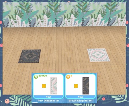 Rugs Section: Pink (S50,900) and Brown (5LP) Diagonal 1×1 Rugs