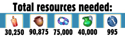 Laura Craft? You may have noticed at the front of one of your houses there is a board with a bubble of a person holding arts and crafts items above it, this is Laura Craft, you can buy her for real money to help you complete the event. When you buy her, you select the item you want her to make from the options: 200 candles, 300 pottery, 450 jewelry or 500 glassware (the amounts seem to differ for most of you and I have no idea why that is!) (you will unlock all the options once you have unlocked all the stations) and you will be able to collect them after 2 hours.