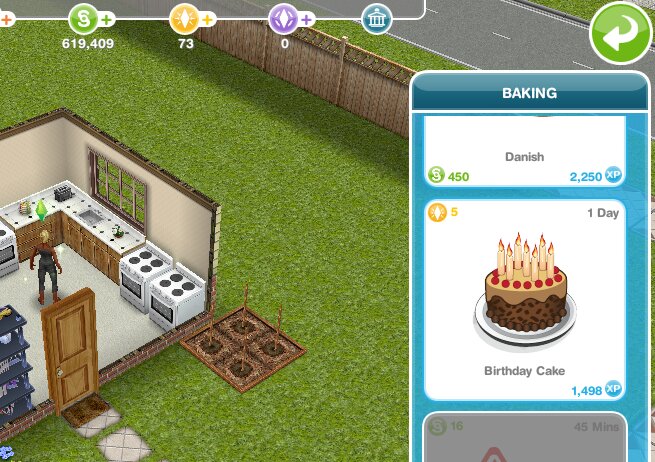 - Bake a Birthday Cake (costs 5LP)- 1 Day (can be started early but stay away from house until you get the goal)