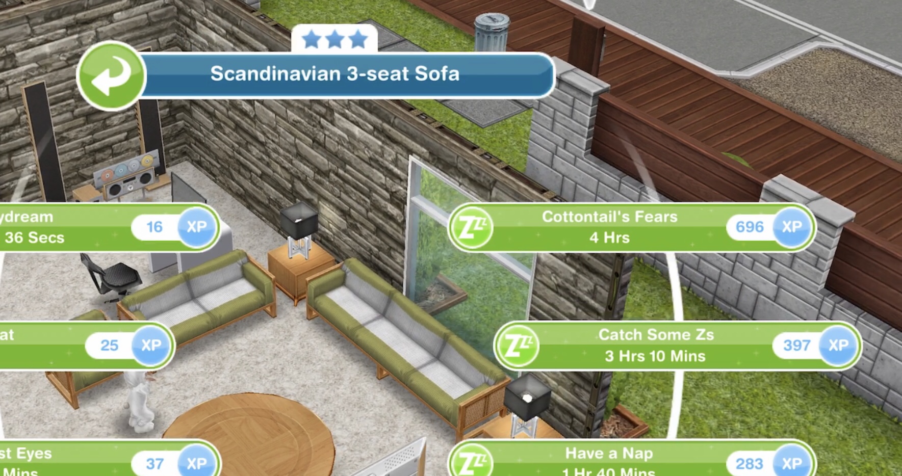 - For tasks that require you to place a certain number of items, if you store one of those items already in the house you will need to buy or replace it. For example, if you need to buy 6 windows and there are 3 there already but you store them all you will need to buy 6 windows rather than buying 3 more