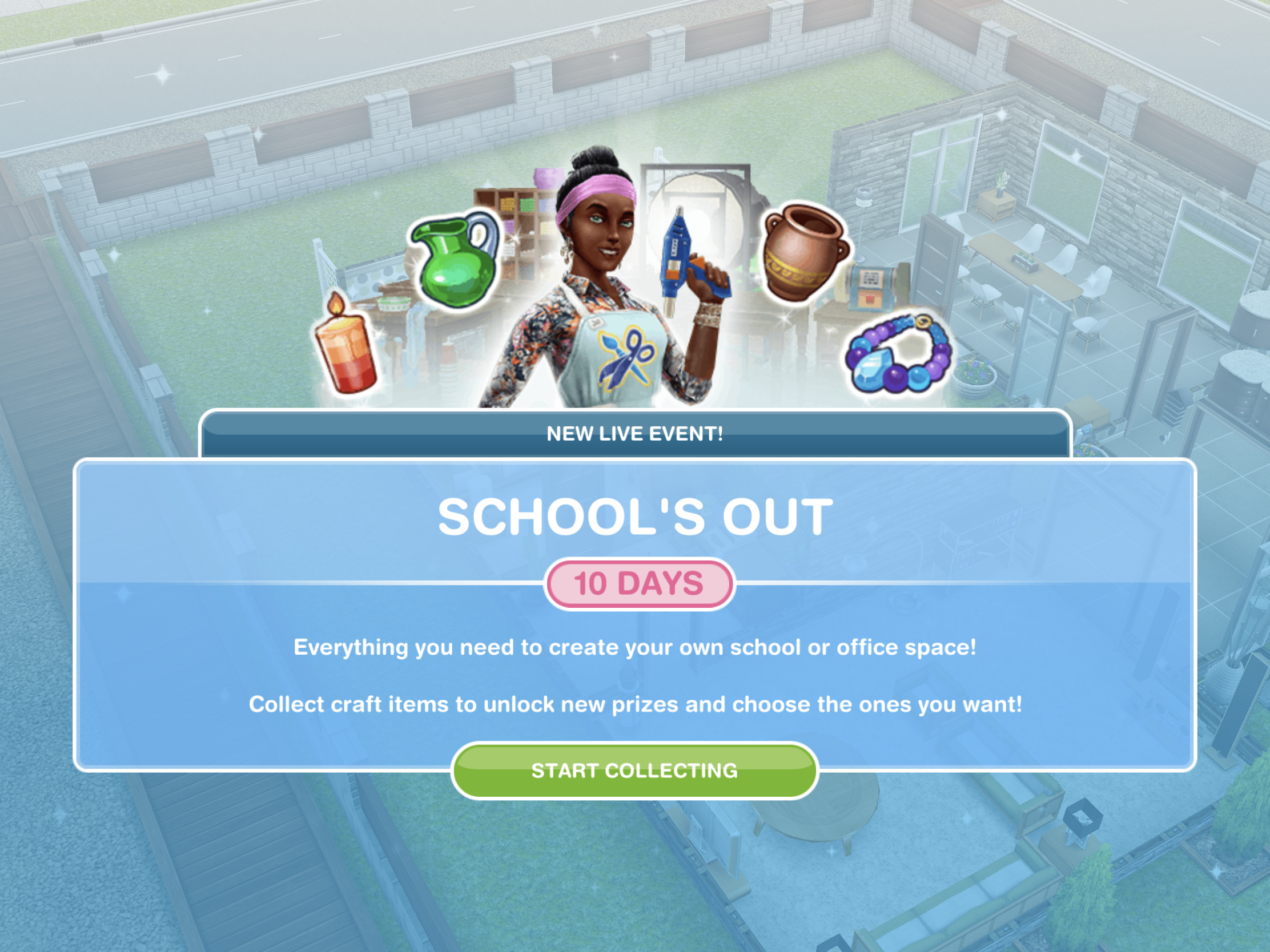 Complete this brand new live event (starts 30th April) to unlock loft themed items and if you complete the whole event in the time limit you unlock the Home Sweet Home house template. This event is only here for 13 days and the aim of it is to collect enough arts and crafts items from the arts and crafts stations (found in the event tab of buy mode) to unlock all the items in this event.