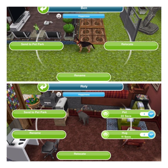 Once one of your sims and the dog are at the pet park you can click on the statue and select one of the options: