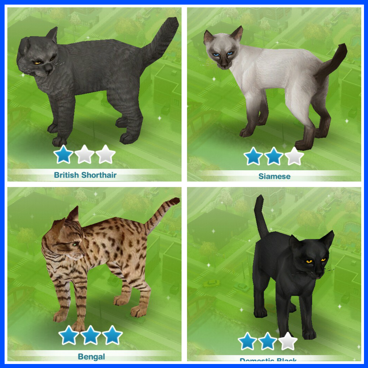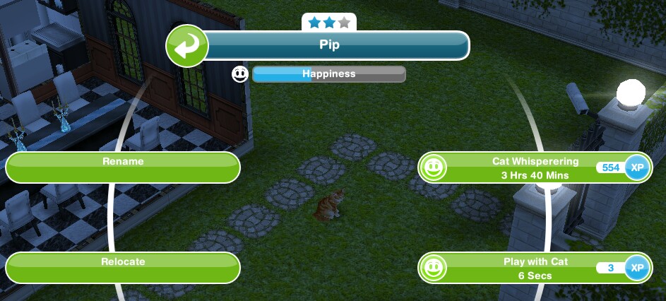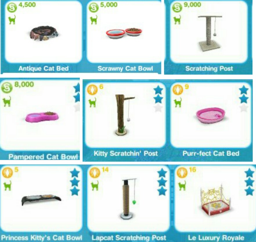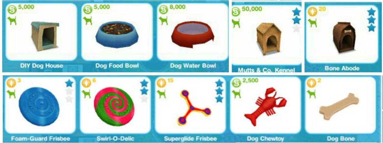 NOTE: The higher the star rating of a cat or dog the more LPs and simoleons they should find