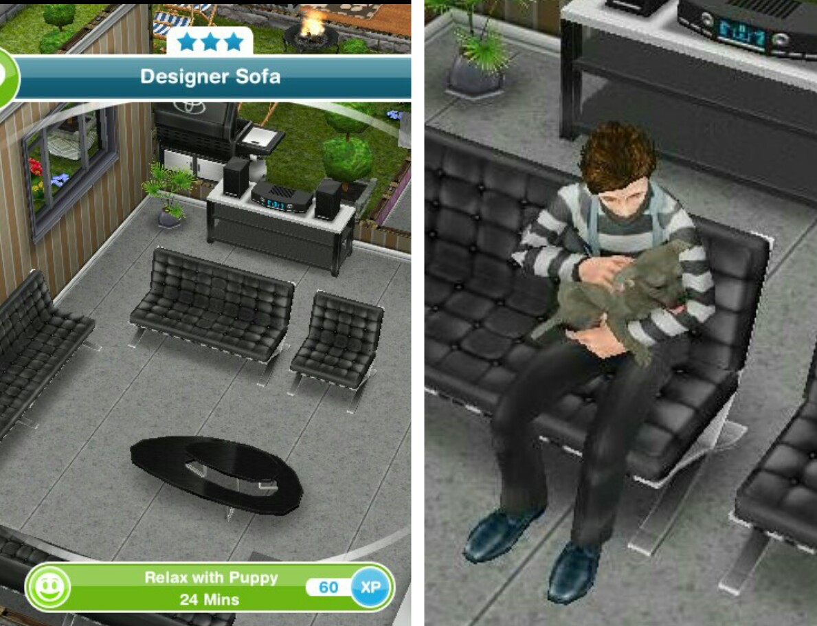 When Adults, Seniors or Teens select carry puppy they will get the option to hug the pet and if they click on a chair they can also relax with the puppy: