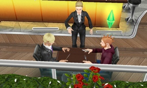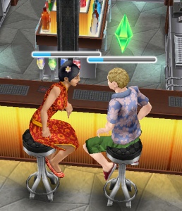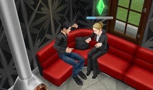 You can also build a romantic relationship up fast by clicking on the stools, one sim selects the option scope room and the other sim selects the other stool to hit on.