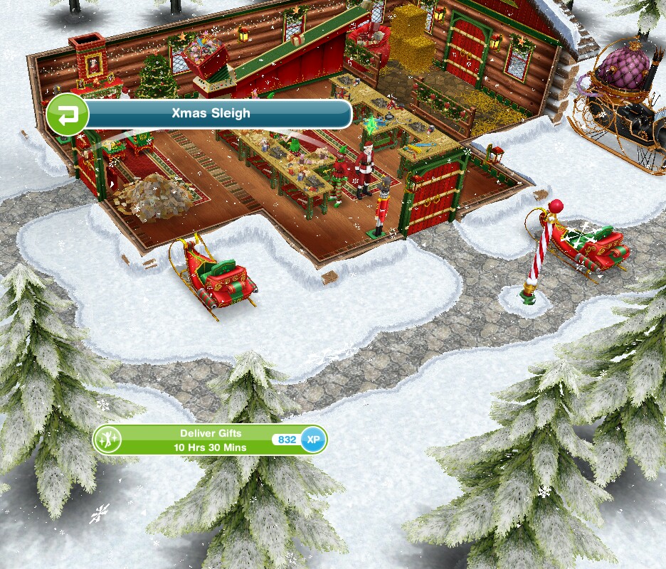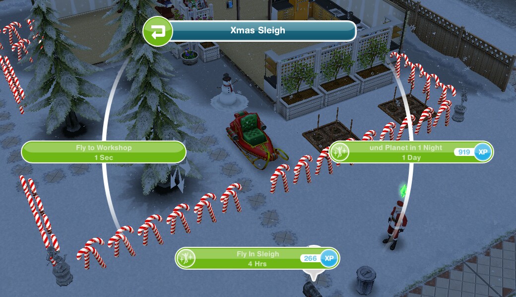 Have 0 sims at Santa’s workshop- fly home in the sleigh