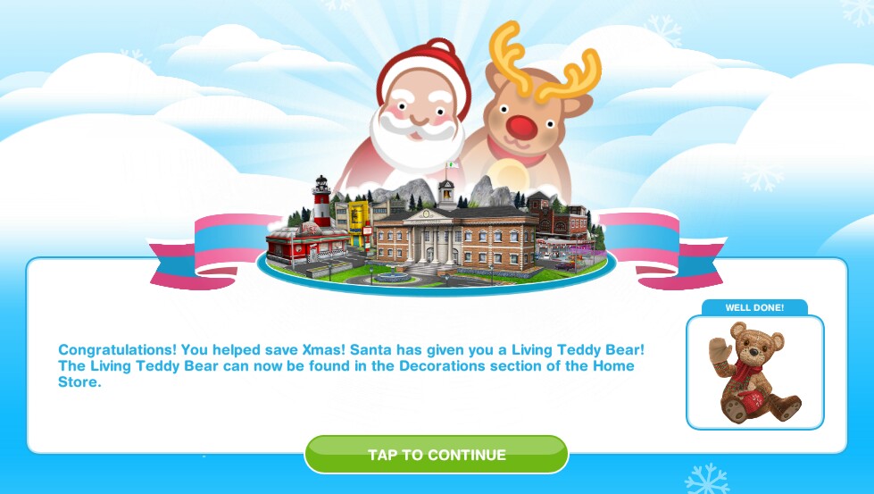 Day 12– final day! Complete to unlock the living teddy bear! (I don’t like how long some of the goals are today- it is Christmas after all!)