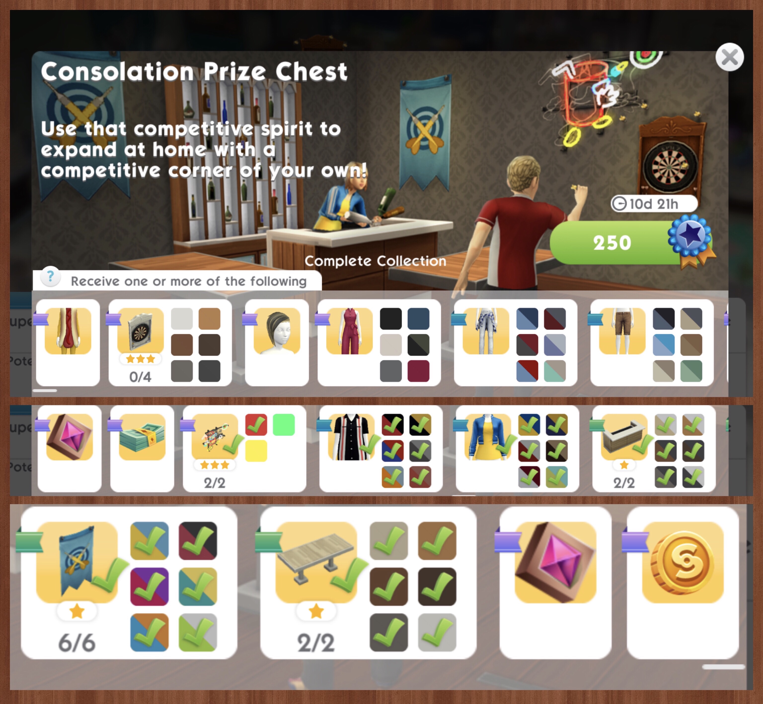Below are the screenshots for the prizes for Season 1. The prizes will change with each season but they will always include items such as furniture, wallpaper, flooring, house templates and NPC (non-playable character) and their clothes: