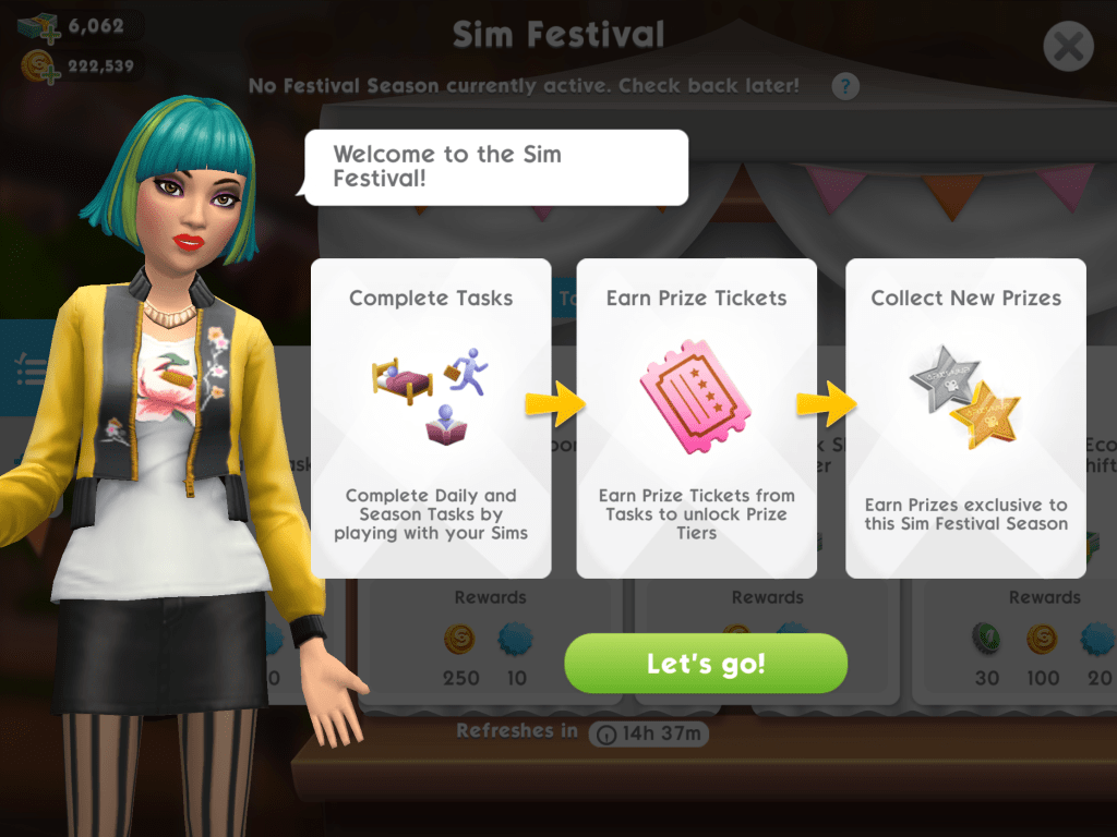 Sim festival events aren’t always available, when they aren’t you can still complete daily tasks to earn rewards but when a sim festival event is available it will last for 50 days and you can earn Prize Tickets by completing daily tasks and season tasks.