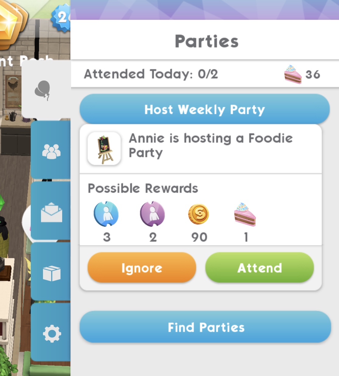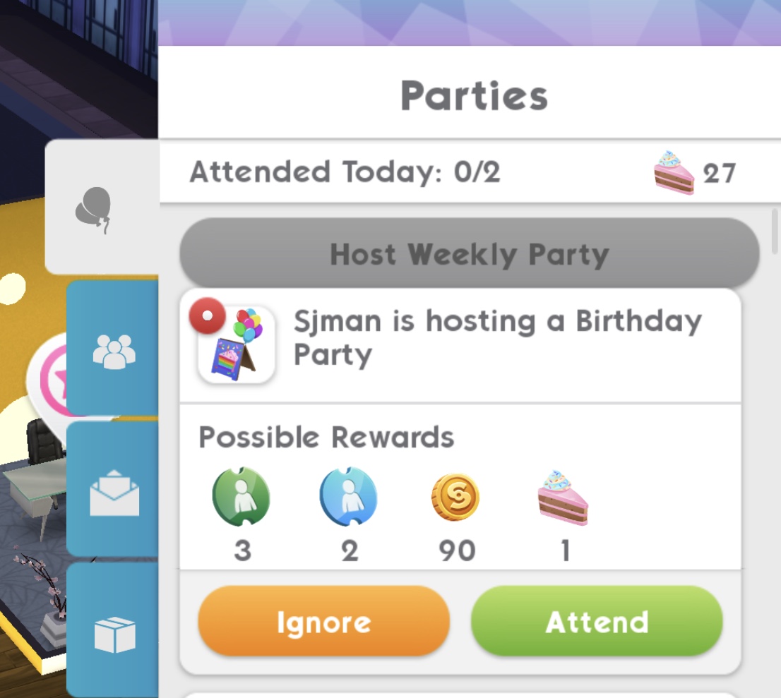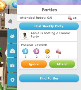7.Attend 1 foodie, concert or studio party (go to the party tab and find a foodie, concert or studio party to attend) Reward: 15 deluxe coins