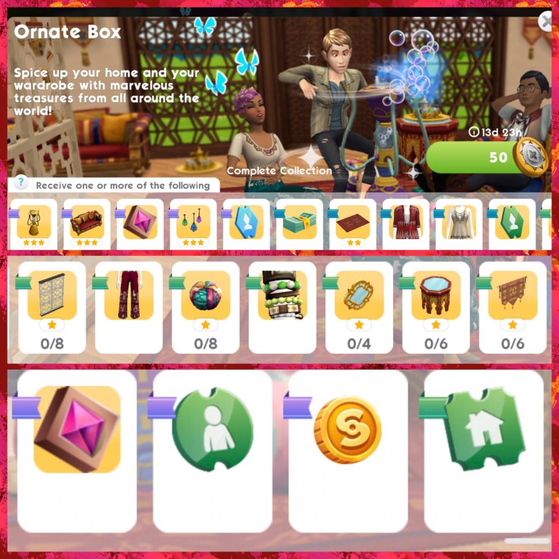 A new time limited event has started in The Sims Mobile! The aim of this event is to earn enough deluxe coins to buy the ornate boxes to unlock all the world of luxury items in the 14 day time limit!