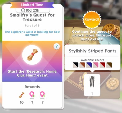 | 1 | Wumples is back with a new batch of quests for you! | Earn 25 Simoleons | S10 |
