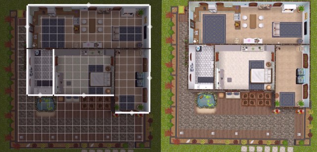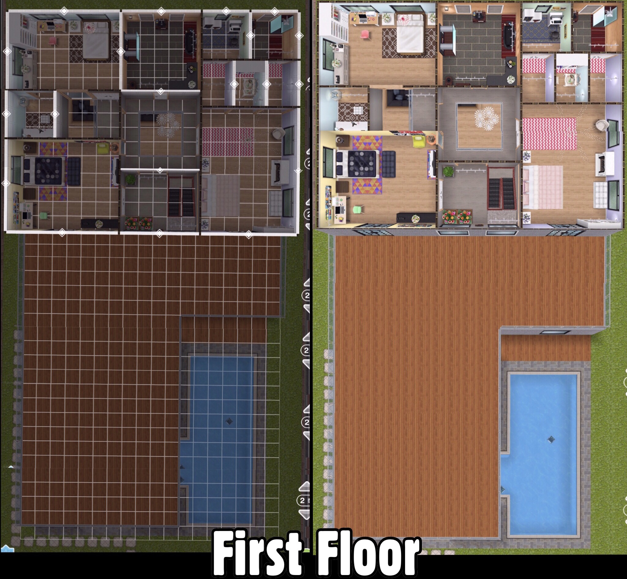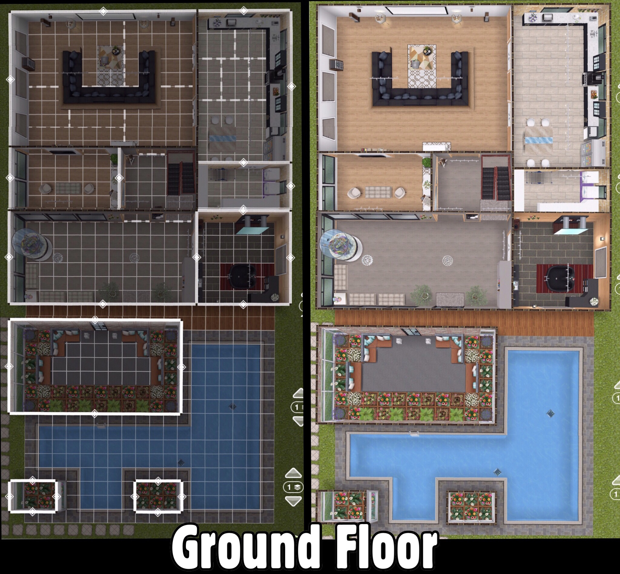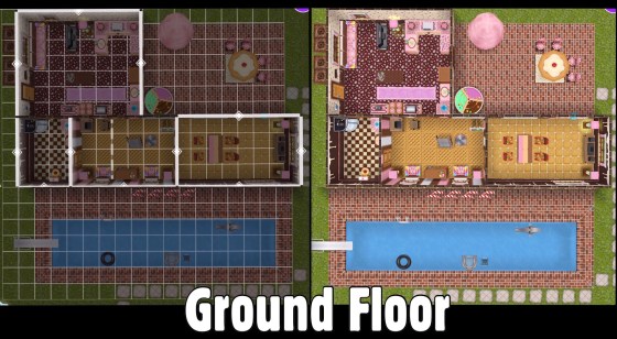 I wanted to celebrate the completion of my buy mode catalogues by creating this house using only items available from level 1 to 20 in The Sims Freeplay, see above for my level 10 version of this house, the aim is to upgrade this house using level 30 items next then level 40 and 50. This house costs a bit more than the level 10 house but if you have already built that one this one will be cheaper as most of the rooms are the same. The whole build cost S149,663, if you just want to add the rooms right now and build the rest later the cost for the rooms is S1,470.