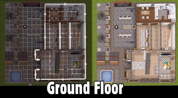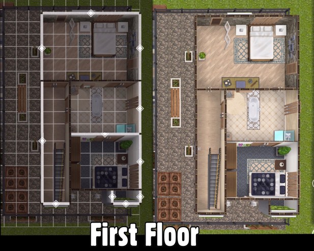 I really wanted to build a house that my sims could access from the second story rather than the ground floor but without the ability to change the terrain this is the only way I could do it! This is a one bedroom house and the ground floor is an extension of the garden (just so it wasn’t left empty) but the entrance to the house is on the first floor.