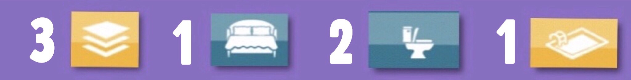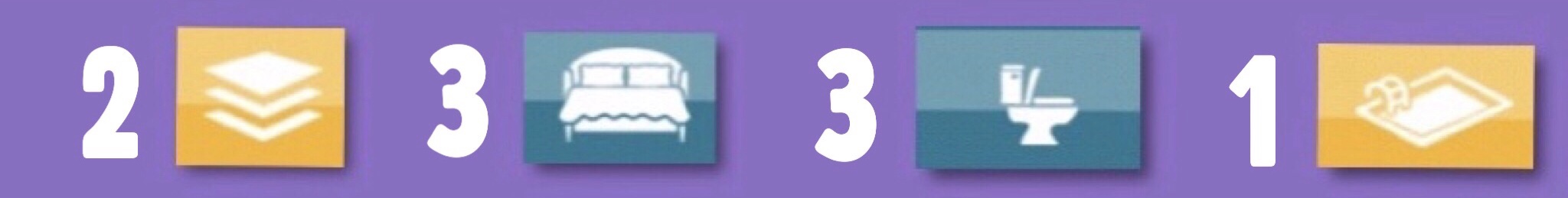 You will see this bar on all the house designs to quickly see how many floors, bedrooms and bathrooms the house has and whether or not there is a swimming pool: