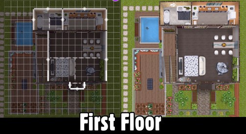 I wanted to celebrate the completion of my buy mode catalogues by creating this house using only items available from level 1 to 10 in The Sims Freeplay, the aim is to upgrade this house using level 20 items next then level 30, 40 and 50. If you are just beginning the game this house contains a lot of essential items you will need to complete quests and the overall cost isn’t too expensive. The whole build cost S54,600, if you just want to add the rooms right now and build the rest later the cost for the rooms is S1,340.