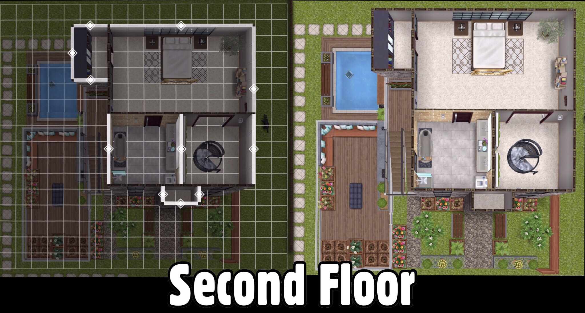 I created this house to celebrate 5 years of this blog! My challenge was to create a house costing 5 million simoleons so I created this large two story, 3 bedroom house with a huge balcony and shaped pool!