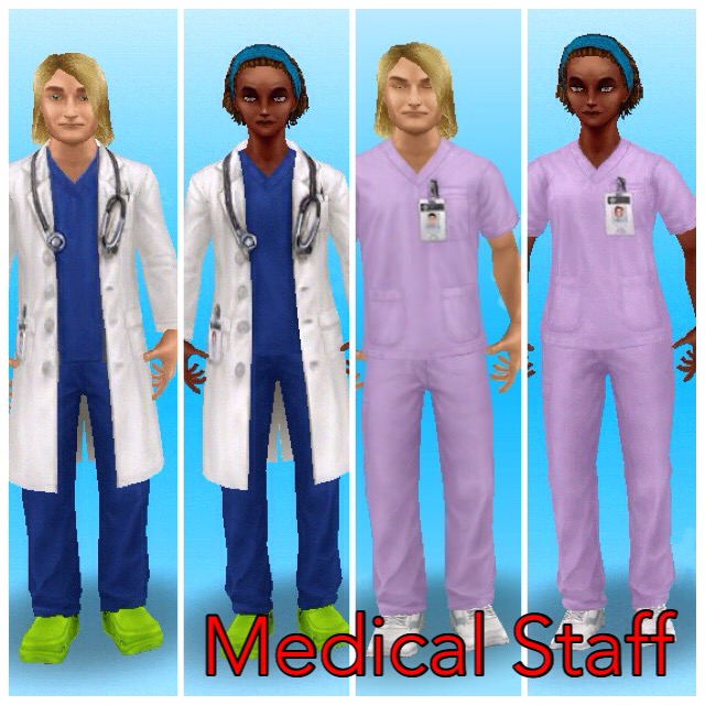 Then only 2 sims, once they reach level 6 can choose to be either Nurse or Doctor, only one sim can be a Nurse and one sim can be a Doctor, all other sims will stay as level 6 pre med.