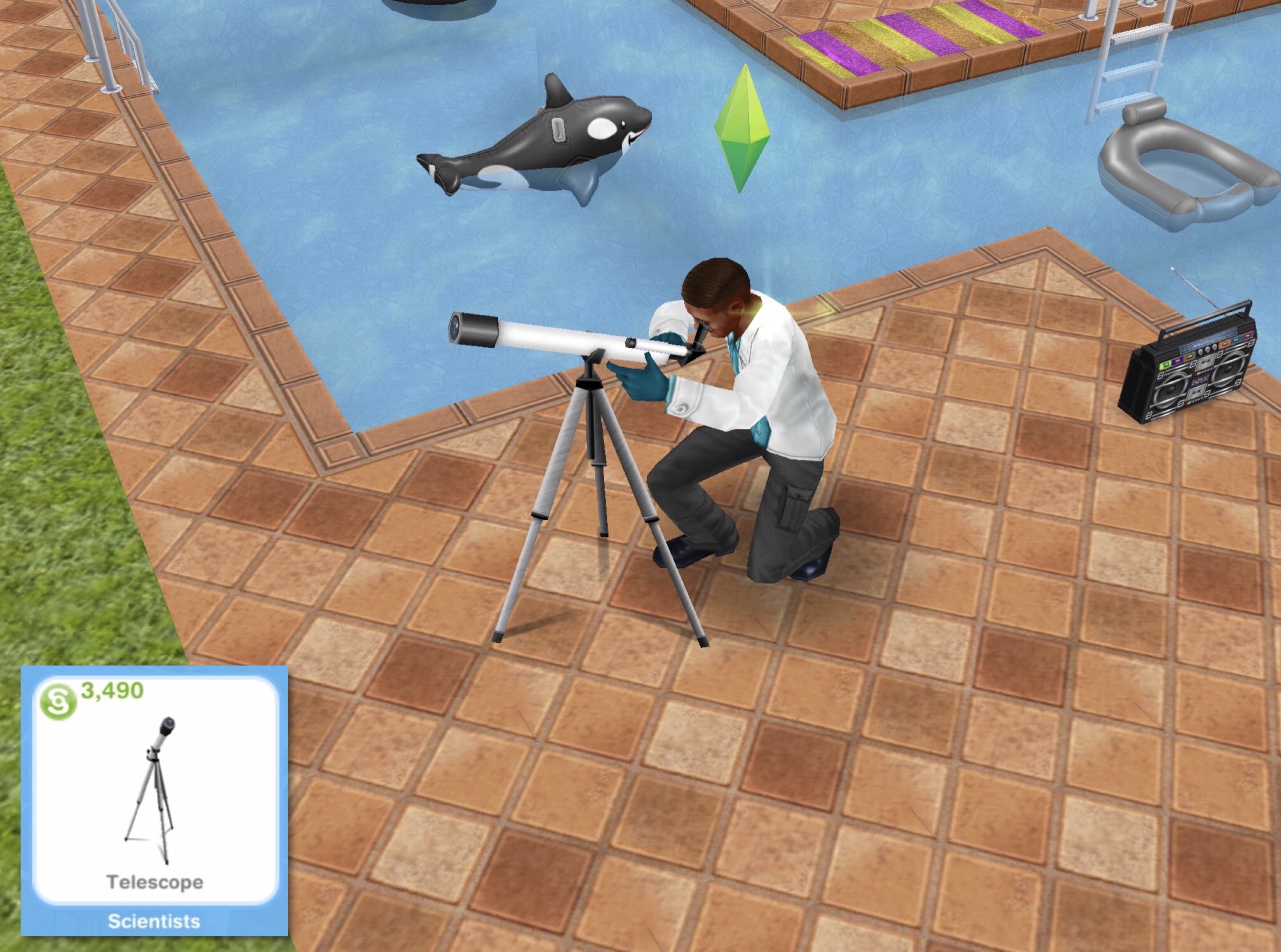 Yes you can buy the telescope from the promotions r us store or hobby and career items tab of the home store. It costs S3,490 and once placed in your sims garden you can cloud watch (during the day) or stargaze (at night) for 3 hours. During this time your career bar will increase like it does when they go to work (but slower) If you don’t want to buy the telescope you can also use the chess board in the park to play chess for 10 minutes, this will increase it too!