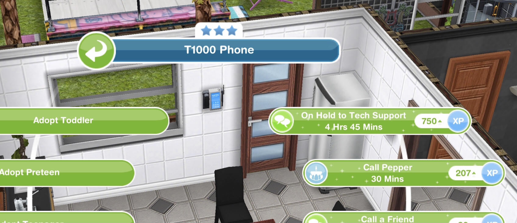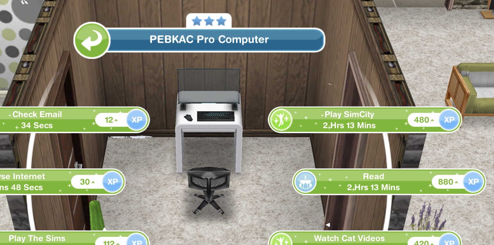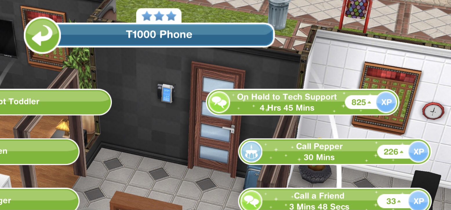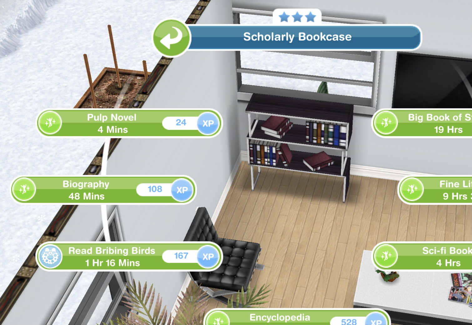 - Have a rest in bed- 3 hours [inspired: 2 hrs 51 mins] (using a 3 star bed at a sim’s house)