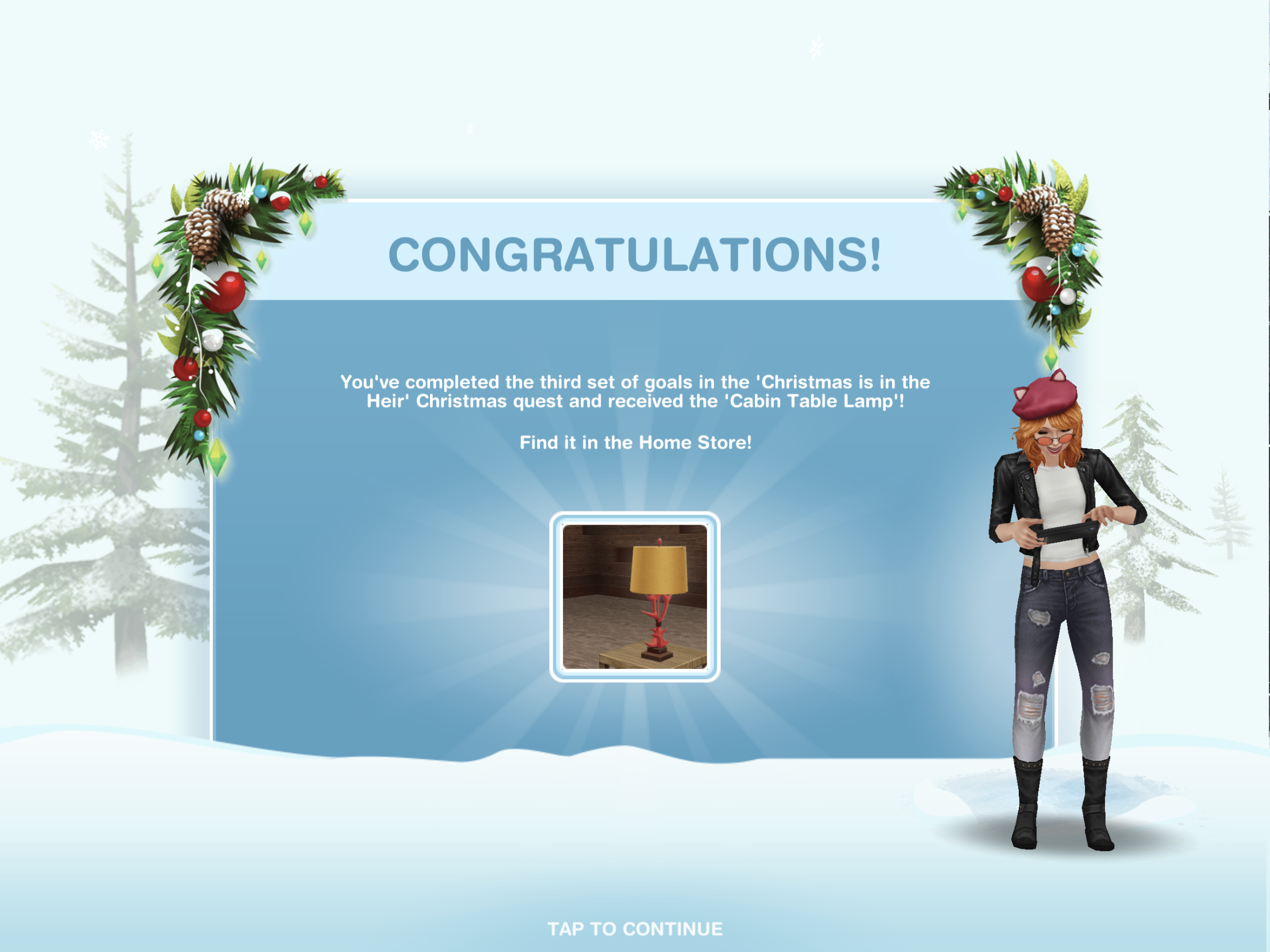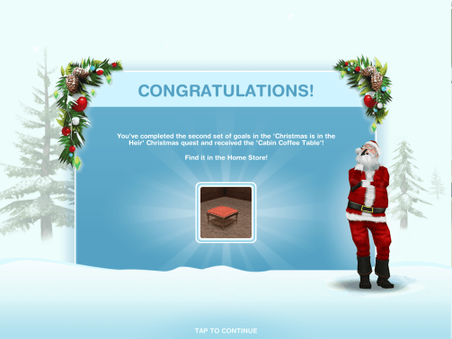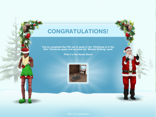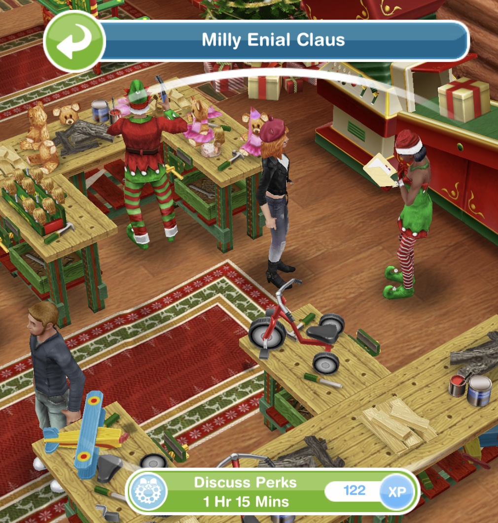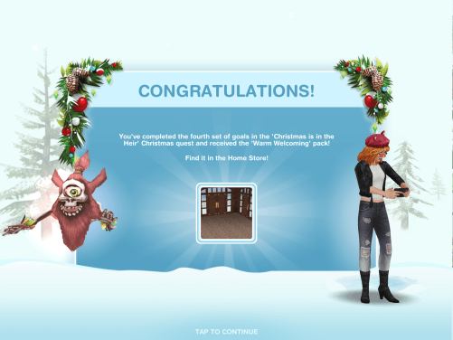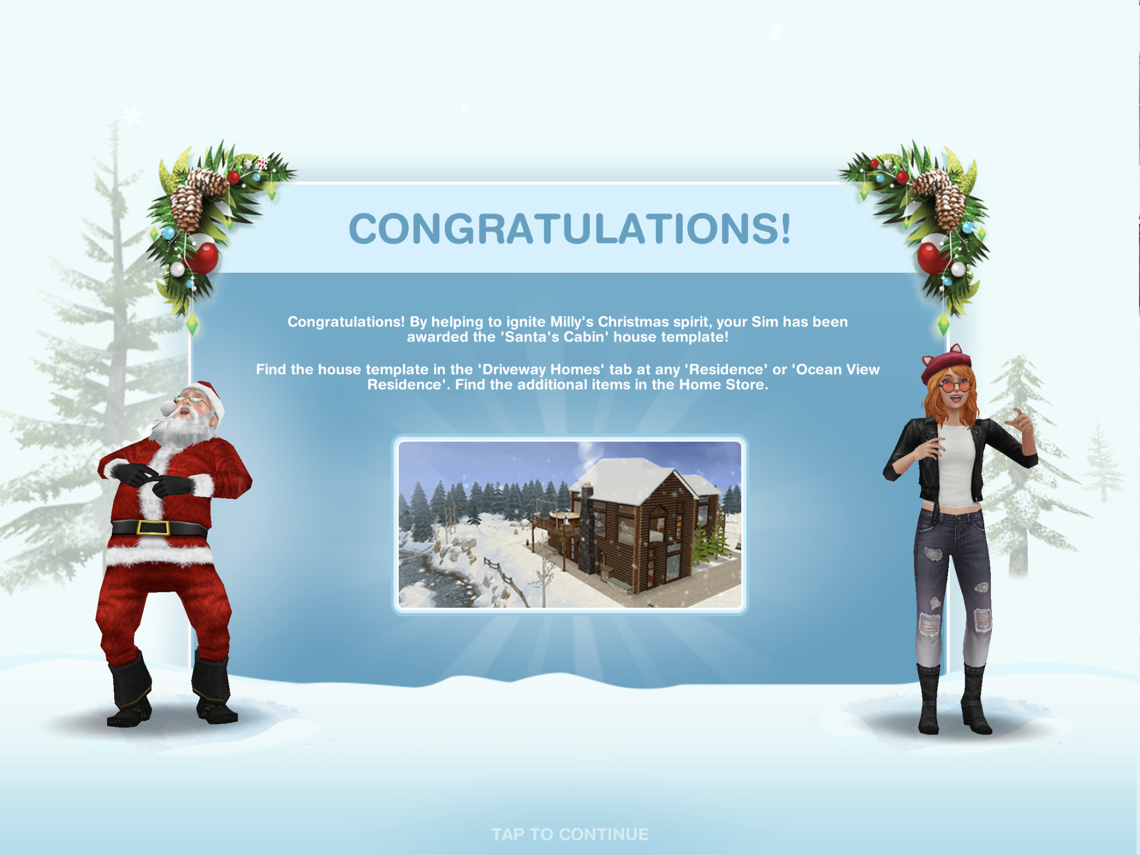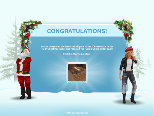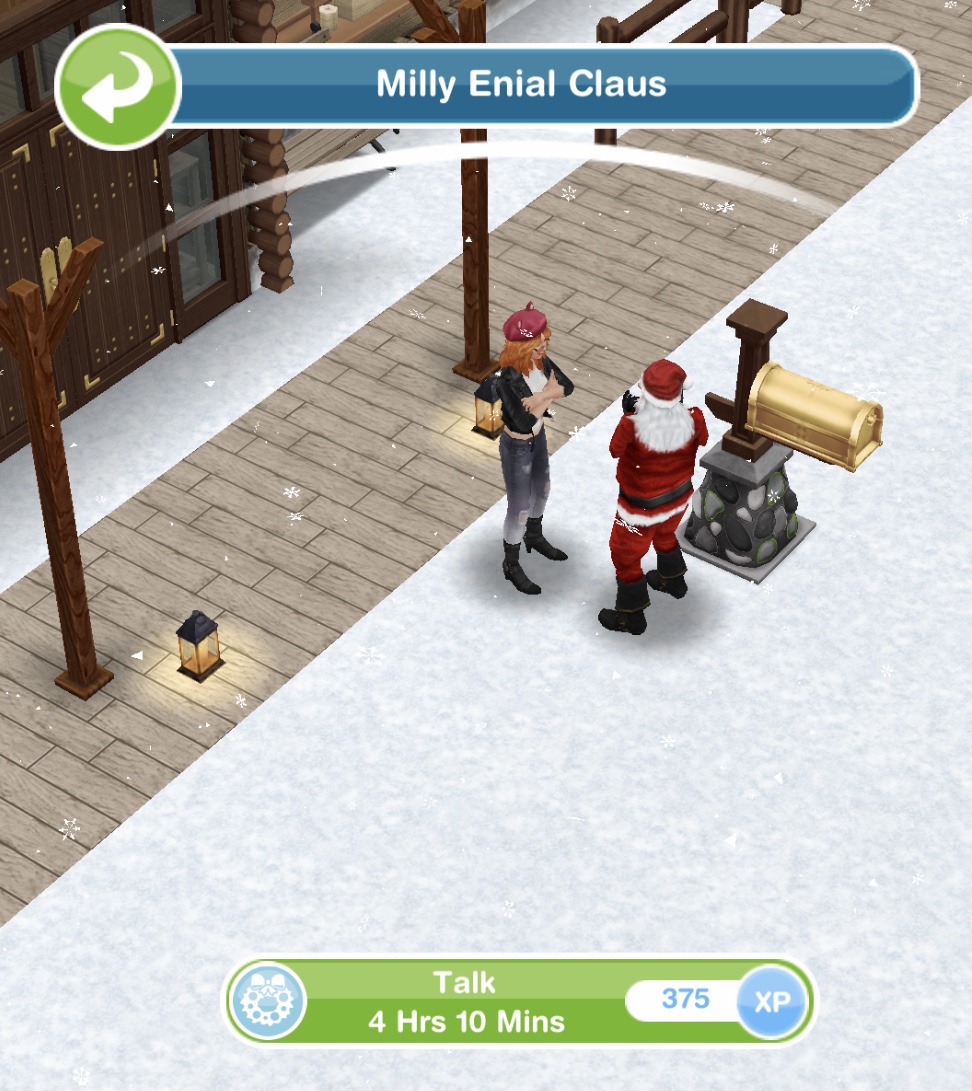 - Search for Santa’s contract 23 times- 1 hour 12 minutes [inspired: 1 hr 8 mins] (click on 23 items around Plümberg and your sims homes) (can skip all with 20 LP- need to earn LP quickly?)