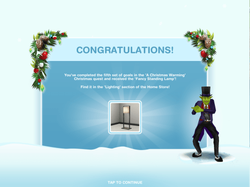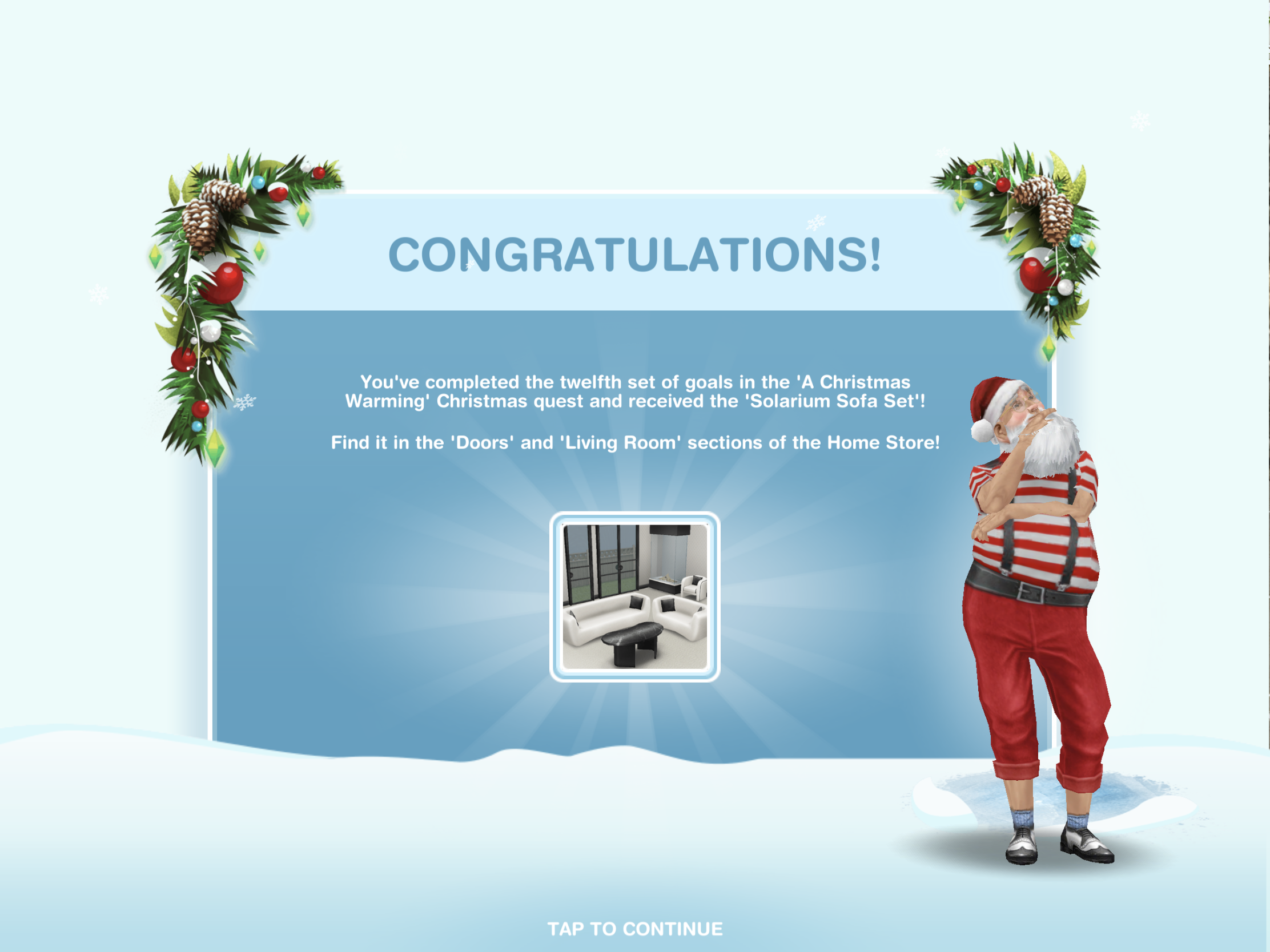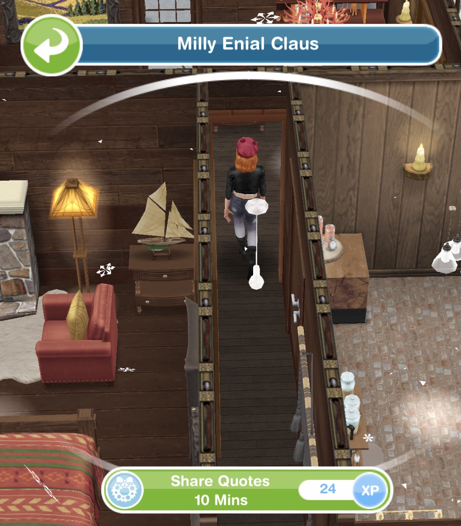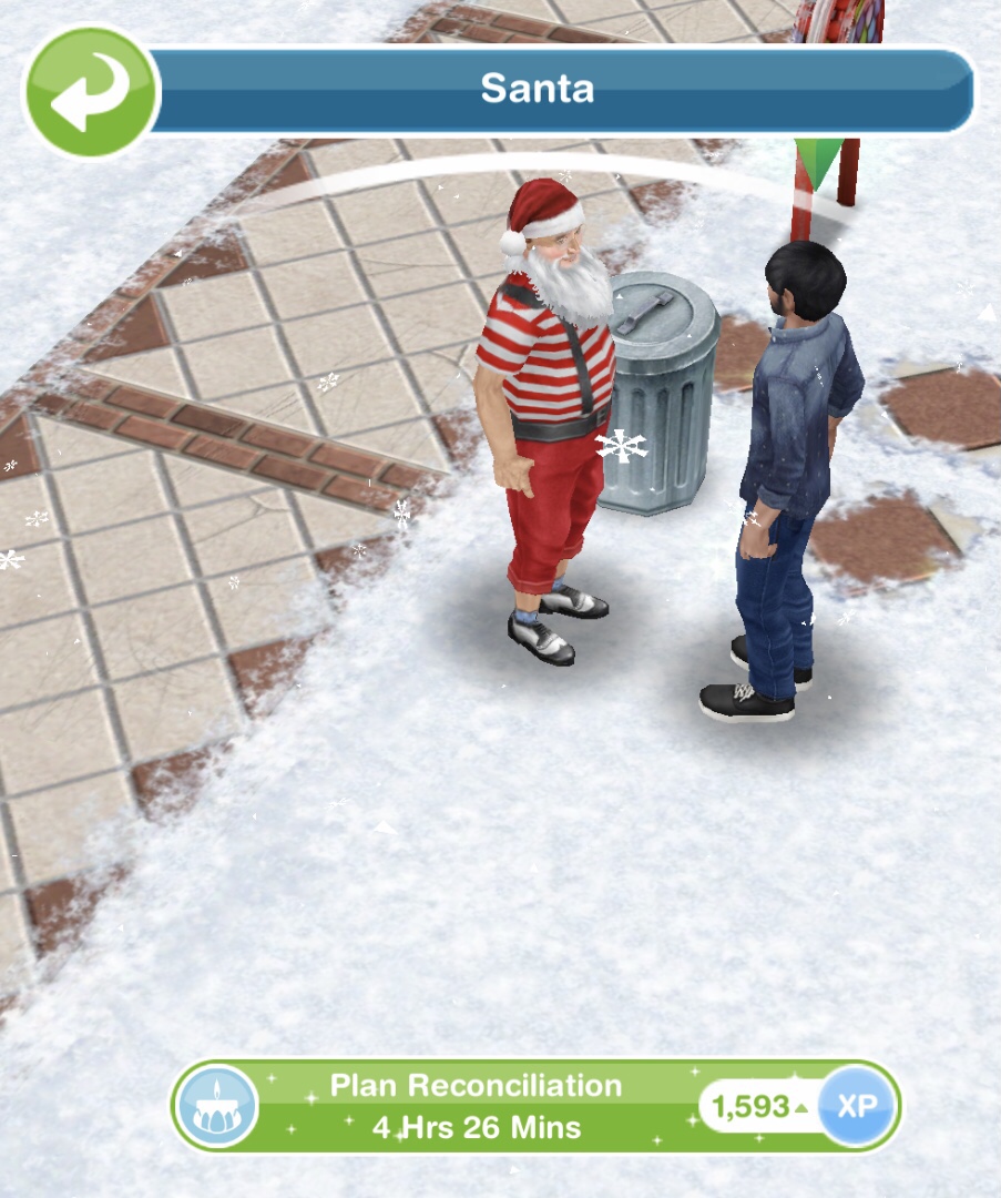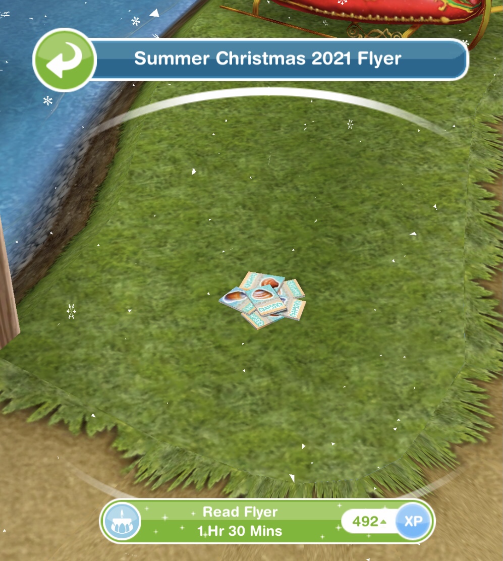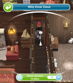 - Search for Santa’s contract 23 times- 1 hour 12 minutes [inspired: 1 hr 8 mins] (click on 23 items around Plümberg and your sims homes) (can skip all with 20 LP- need to earn LP quickly?)