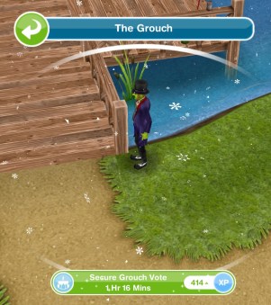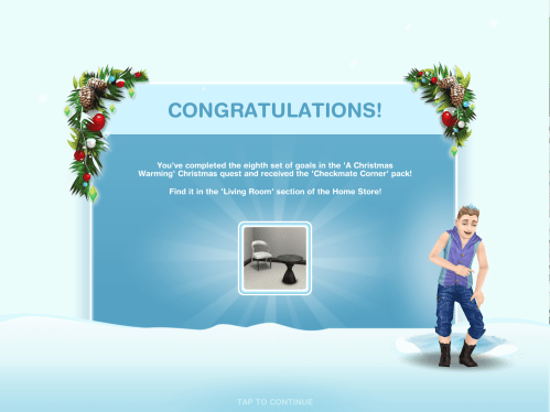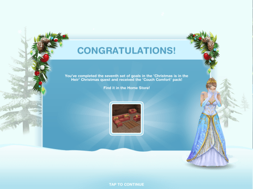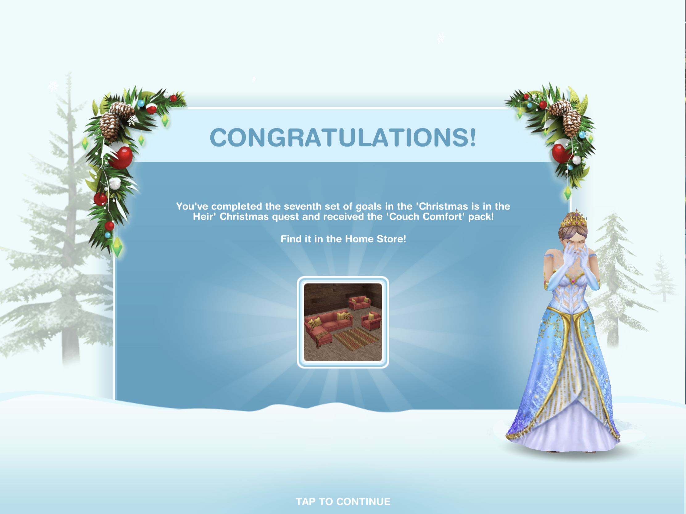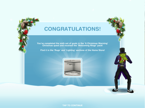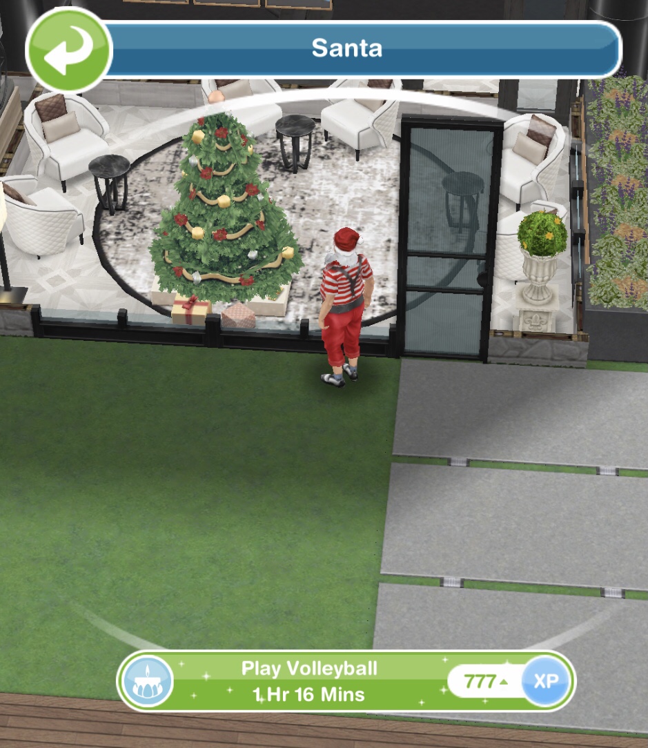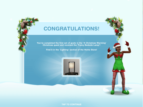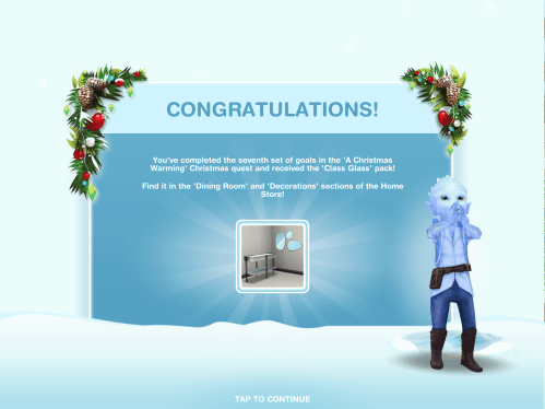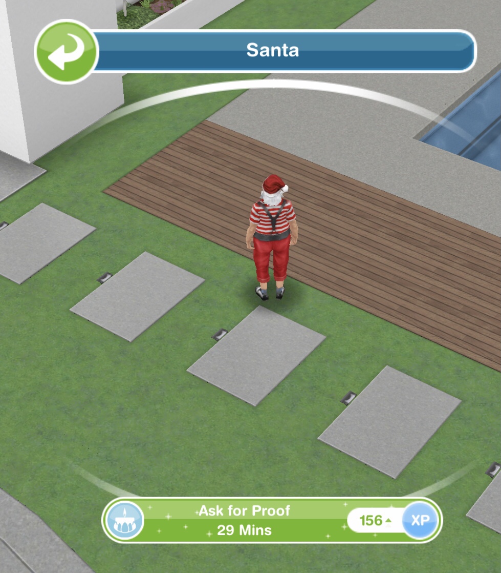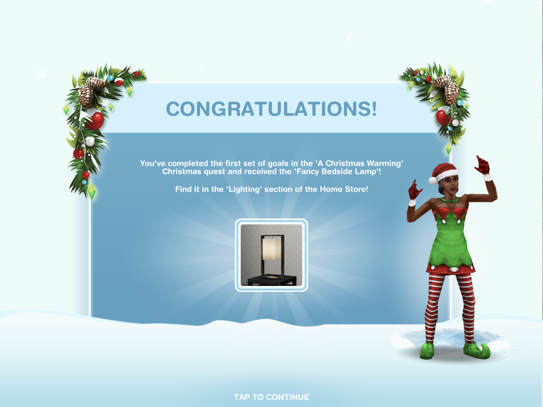 - Search for Santa’s contract 23 times- 1 hour 12 minutes [inspired: 1 hr 8 mins] (click on 23 items around Plümberg and your sims homes) (can skip all with 20 LP- need to earn LP quickly?)