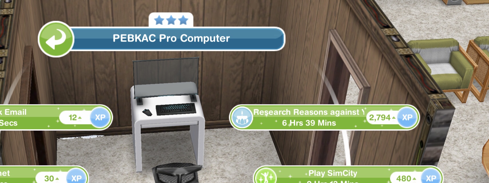 - Search for 20 pieces of information about Carole- 1 hour 12 minutes [inspired: 1 hour 8 mins] (one computer is needed for each sim completing this task) (can skip all with 17 LP- need to earn LP quickly?)