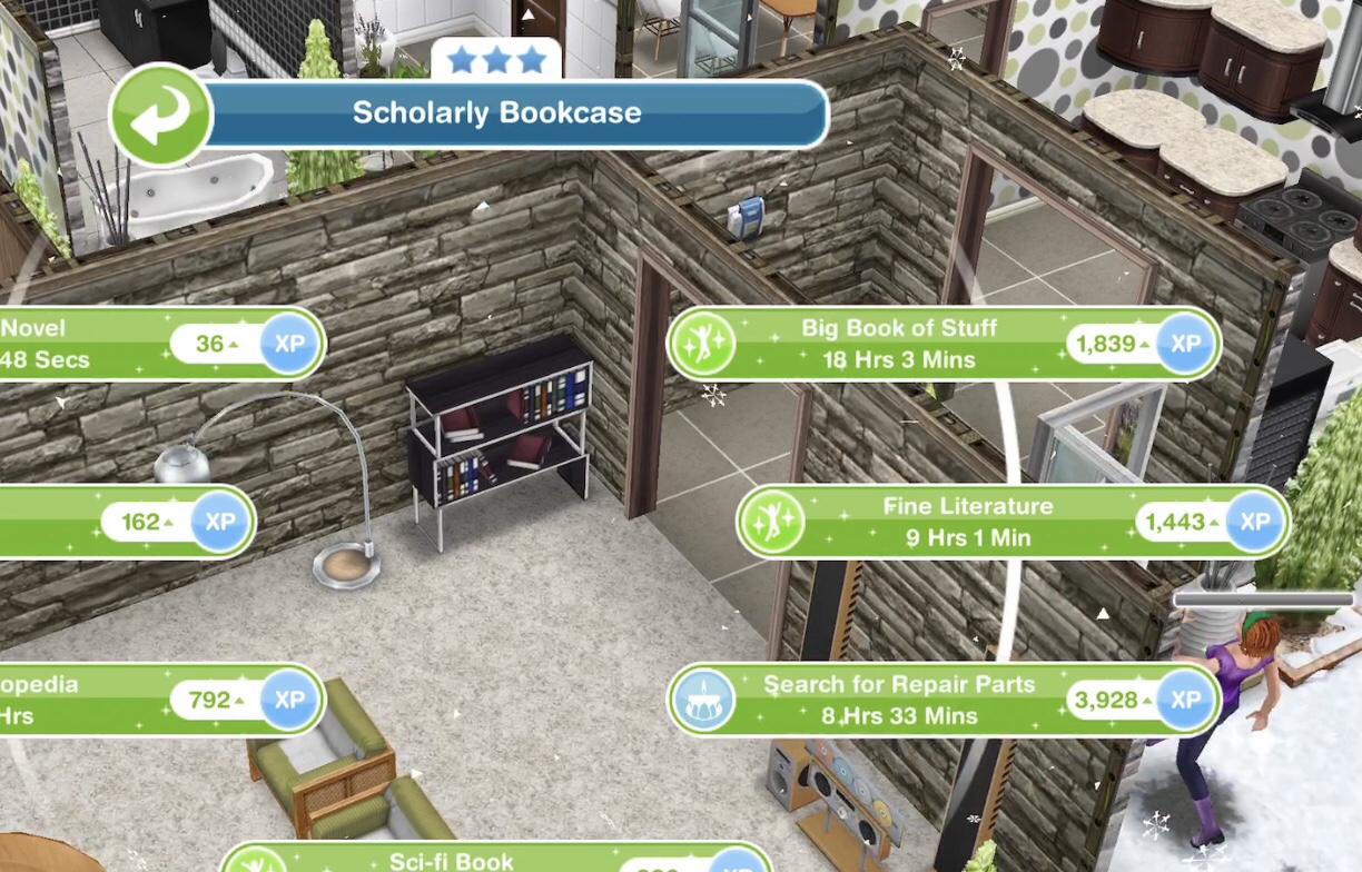- Inspect workstations 10 times- 5 minutes [inspired: 4 mins 45 secs] (can skip all with 9 LP- need to earn LP quickly?) NOTE: there are only 6 workstations at the workshop but you can click on them with more than one sim at the same time