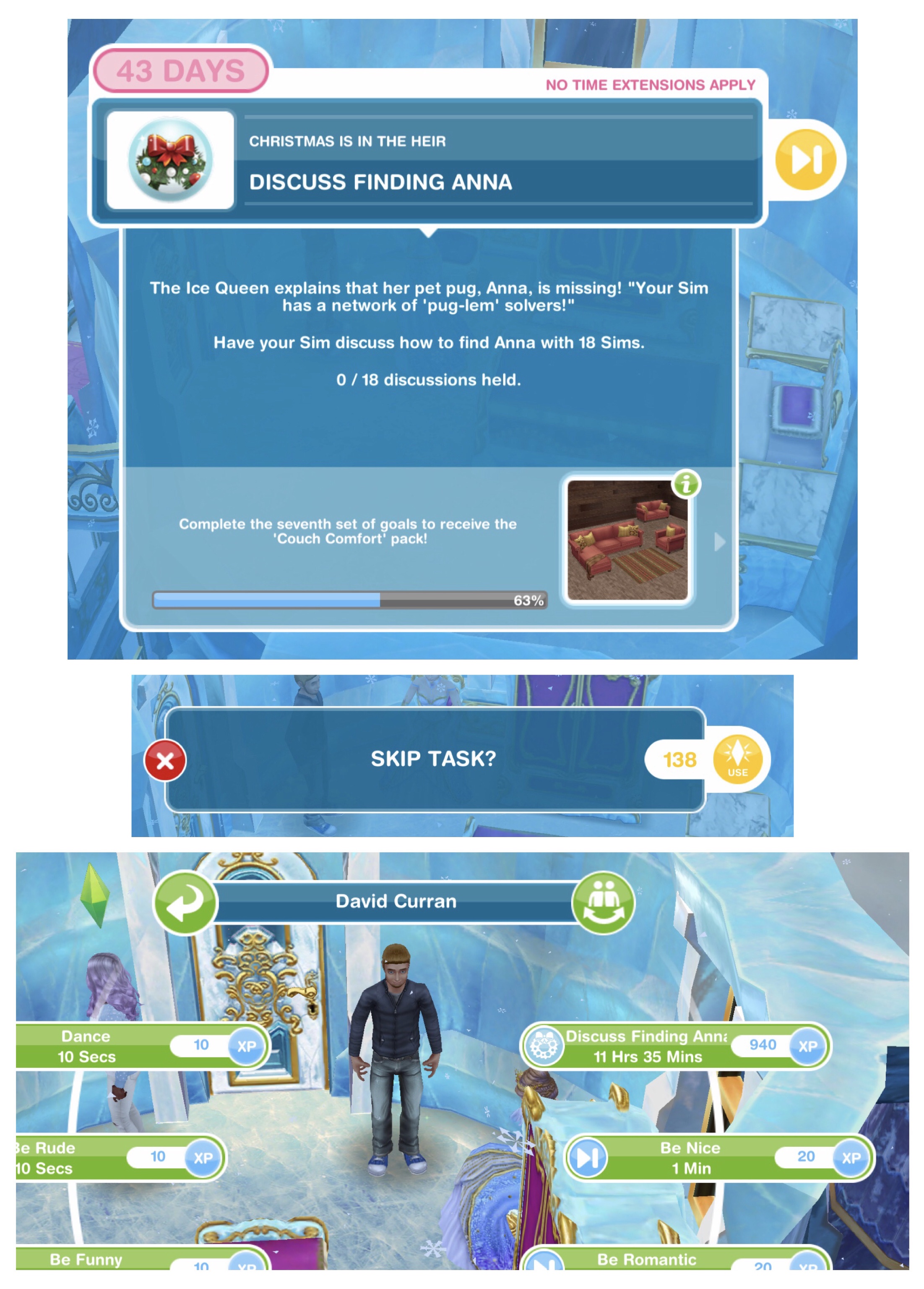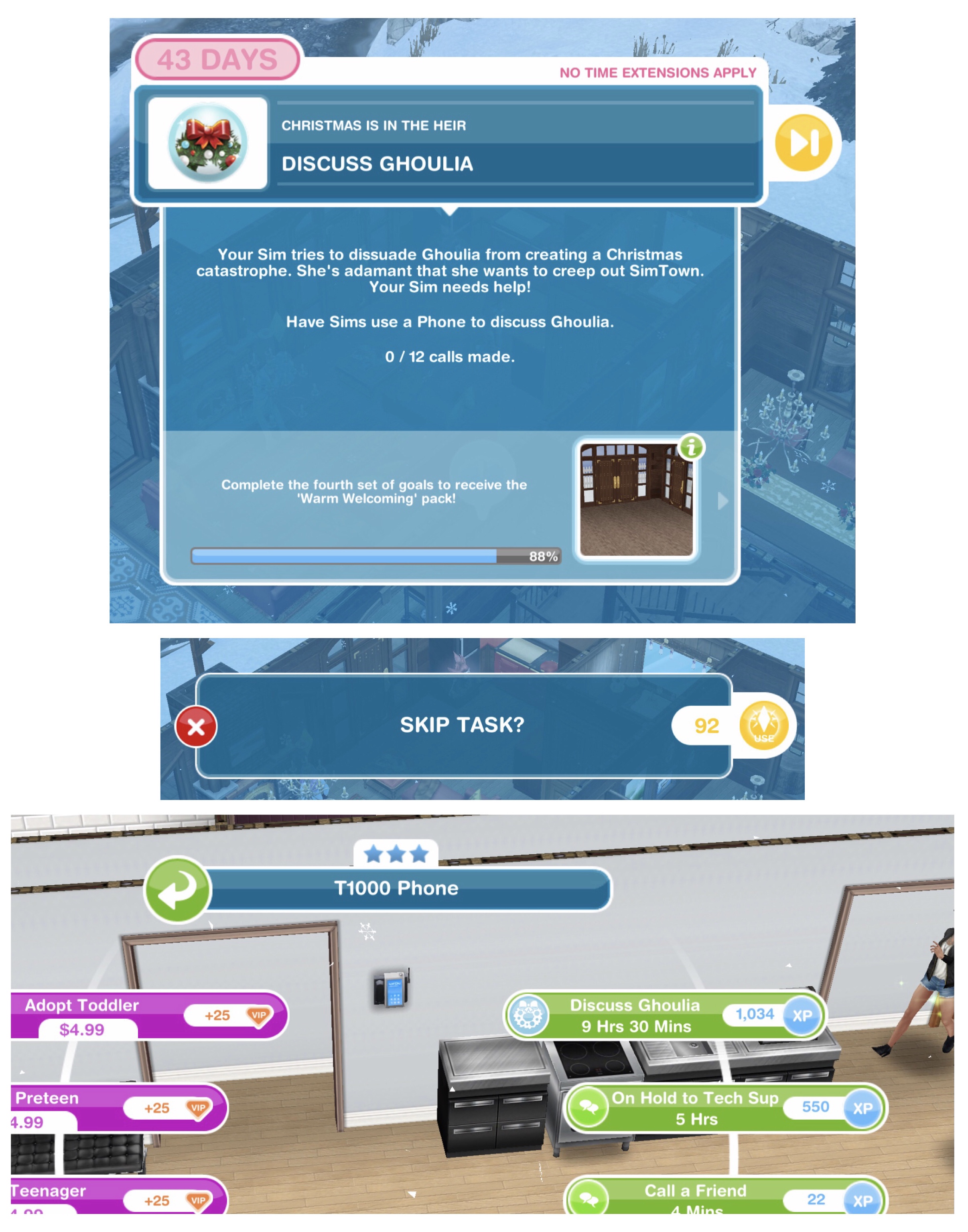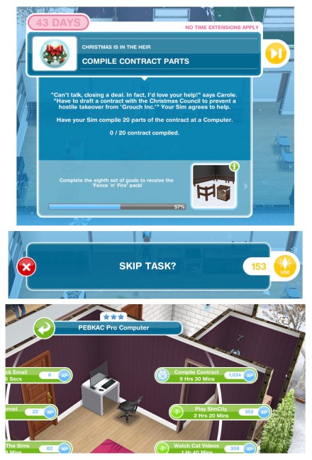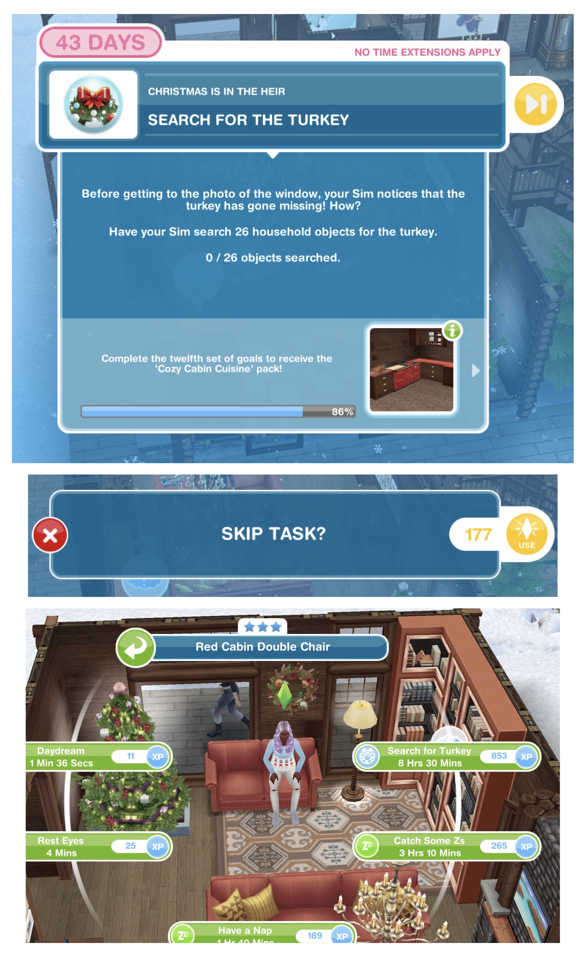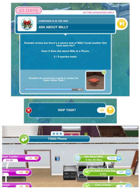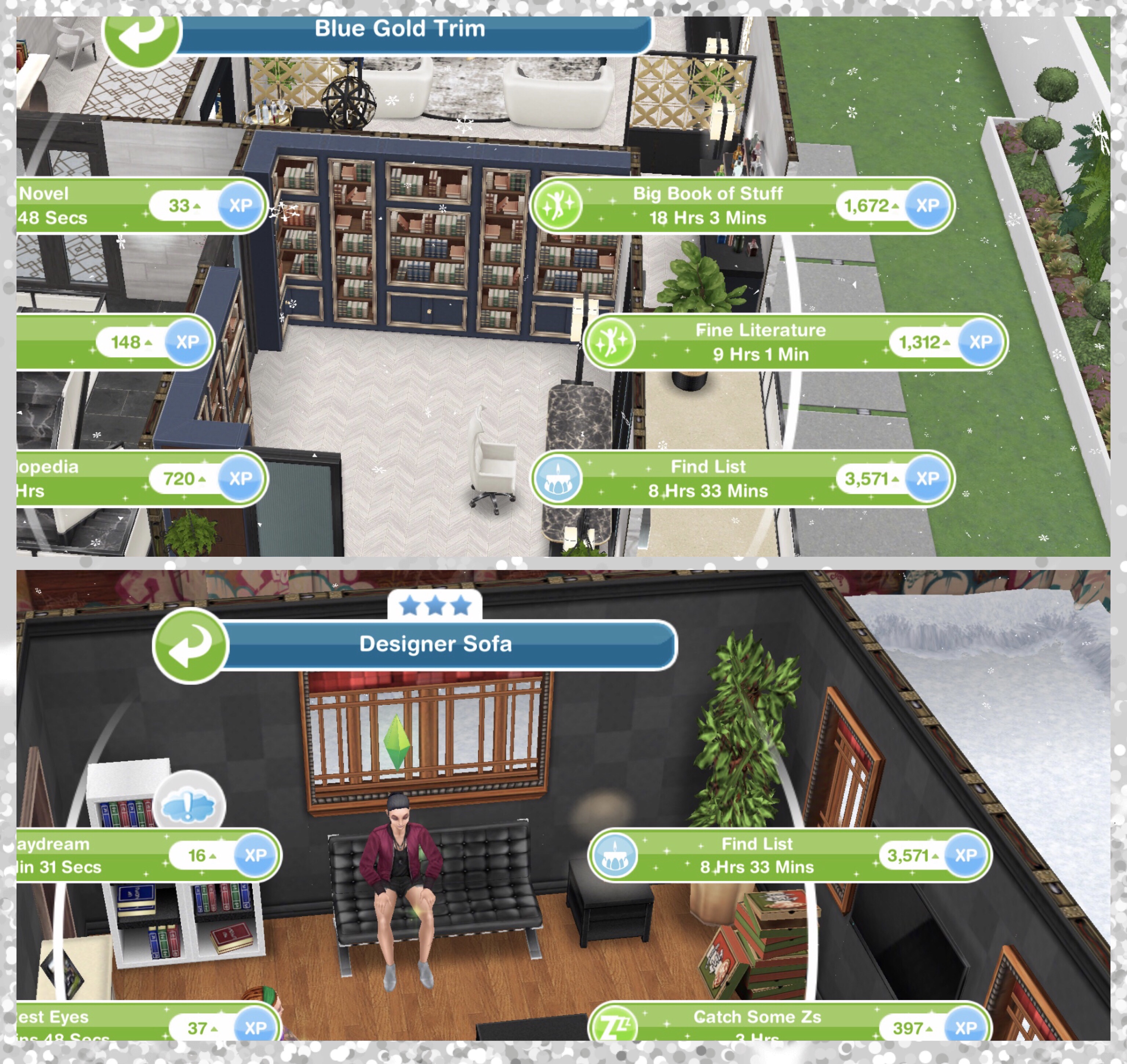 - Find 150 stocking fillers- 24 minutes [inspired: 23 mins] (select this option on objects around your sims houses) NOTE: there is no maximum on how many sims you can have completing these tasks that require multiple sims so have as many as possible completing them