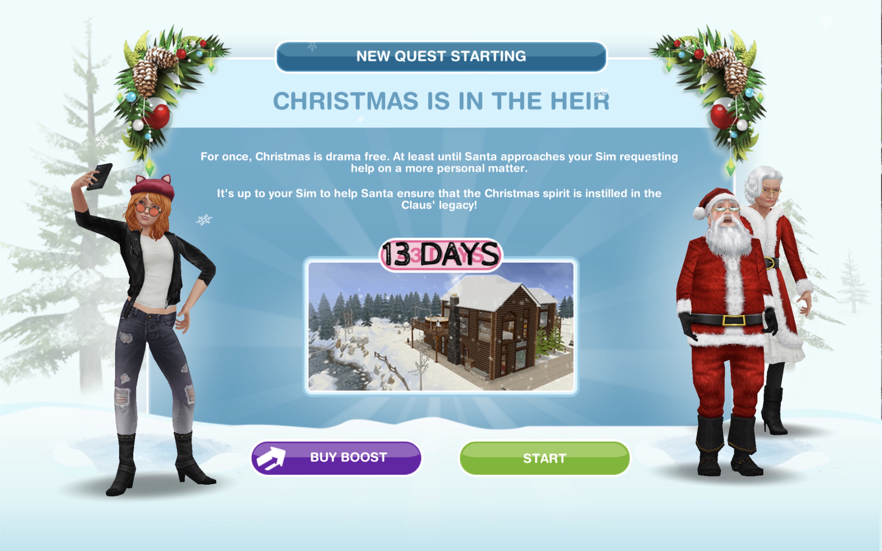 Christmas seems to be on track this year, will your sims get the chance to have a holiday instead? No chance! Join them for this 13 day quest from the 7th December! There are 13 sets of goals to complete in the 13 day time limit so there is a set of goals to complete each day, if you complete the quest in the time limit you win the Plümberg house template! This quest is basically a rerun of the 2020 A Christmas Carole Quest but with a few different tasks and different prizes unlocked.
