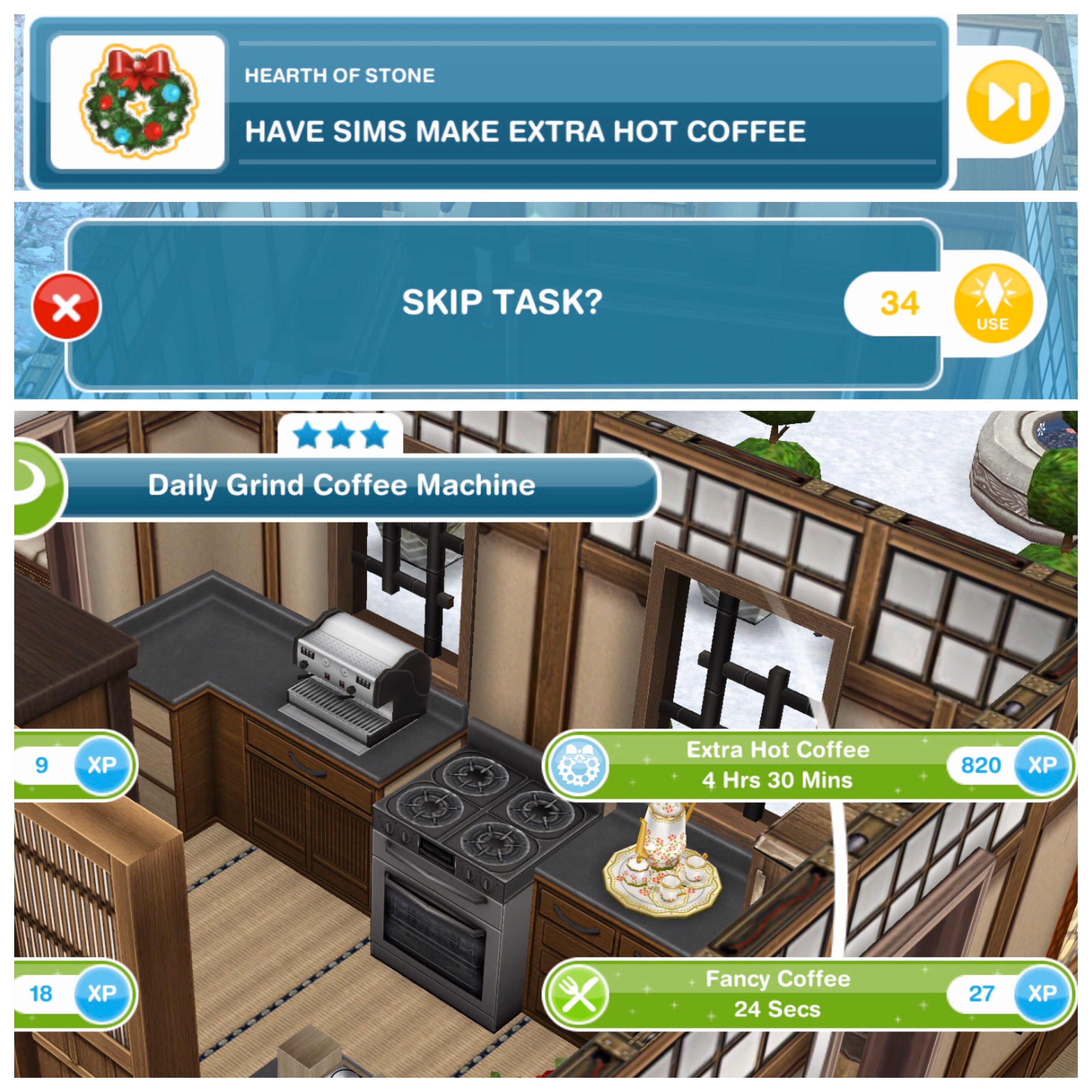 Have 22 sims make defrosting coffee- 3 hours (using a coffee machine)(can skip for 37LP- need to earn LP quickly?)
