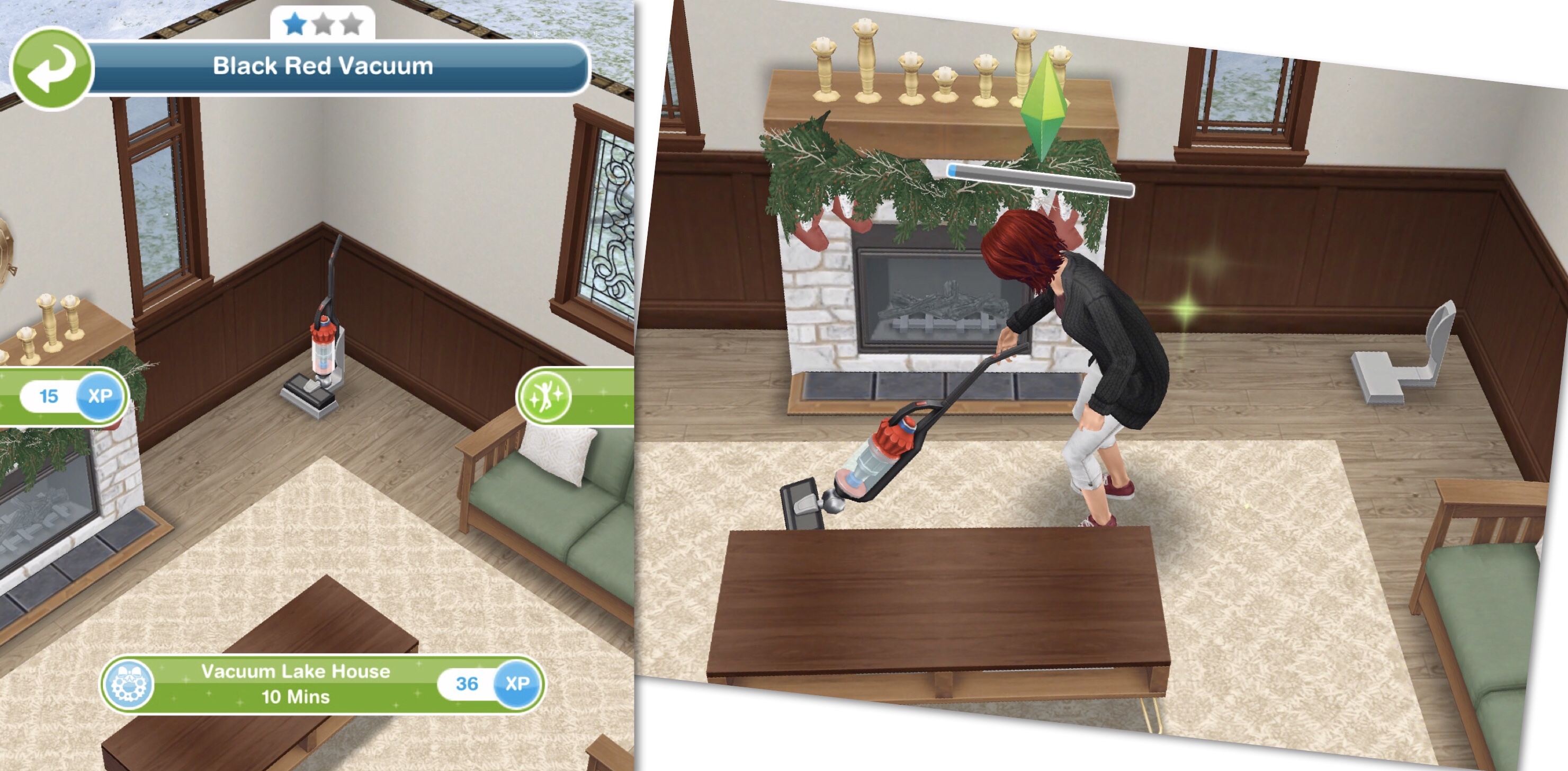 Vacuum the Lake House- 10 minutes (using vacuum in corner)