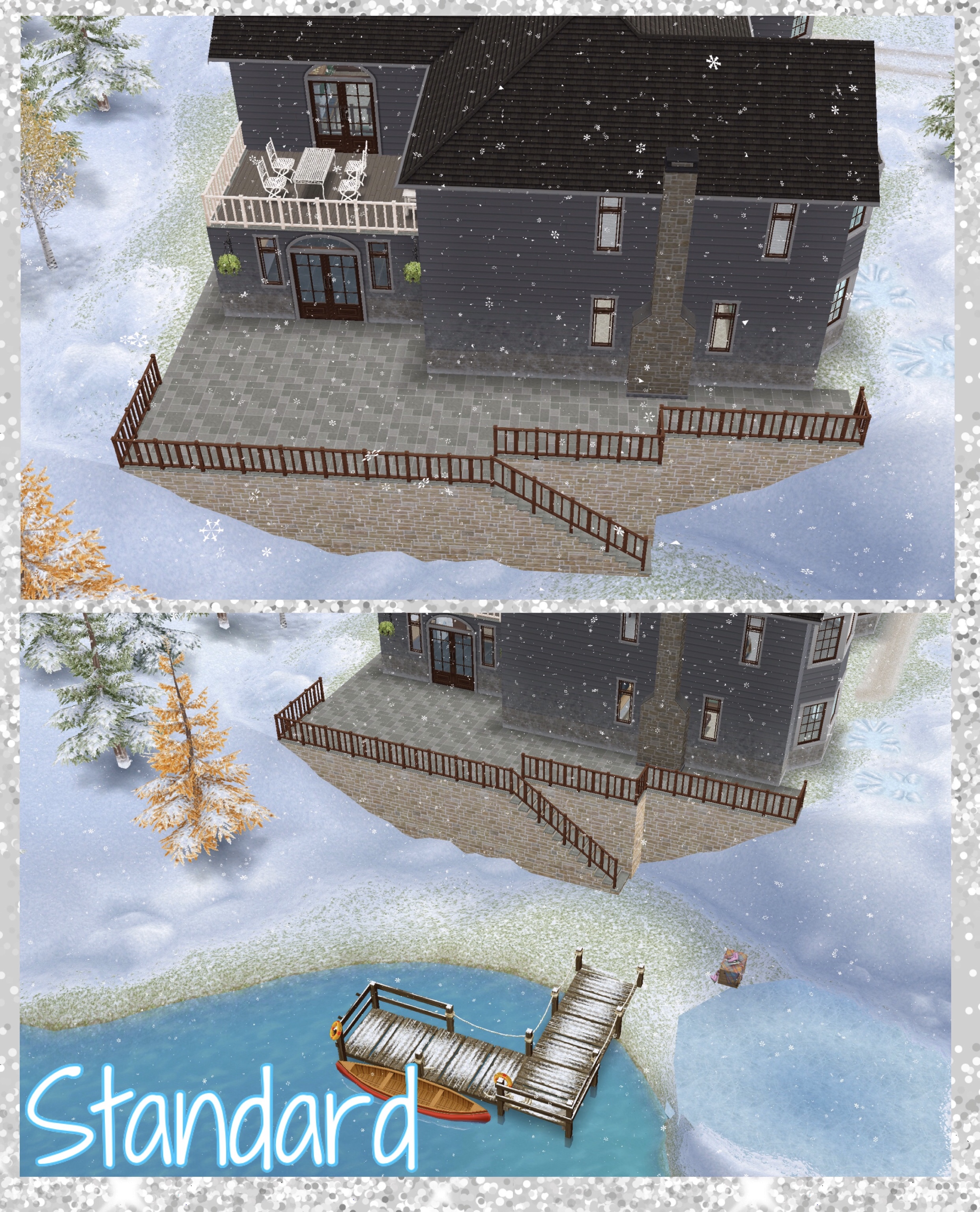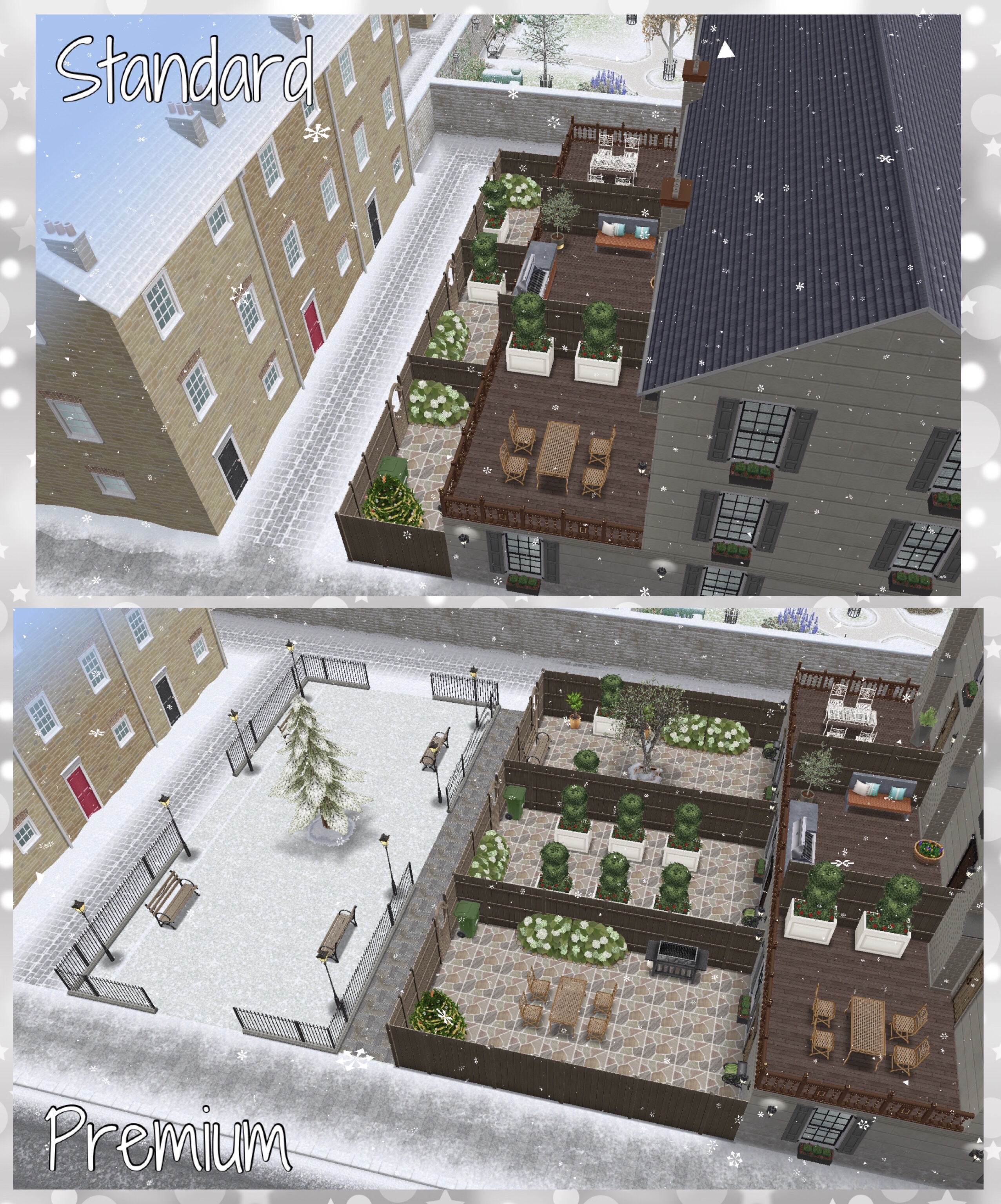 The only difference between the lakehouse on a standard and a premium residence is the patio area on the premium is longer, there is also a patio table and chairs and trees on the premium residence