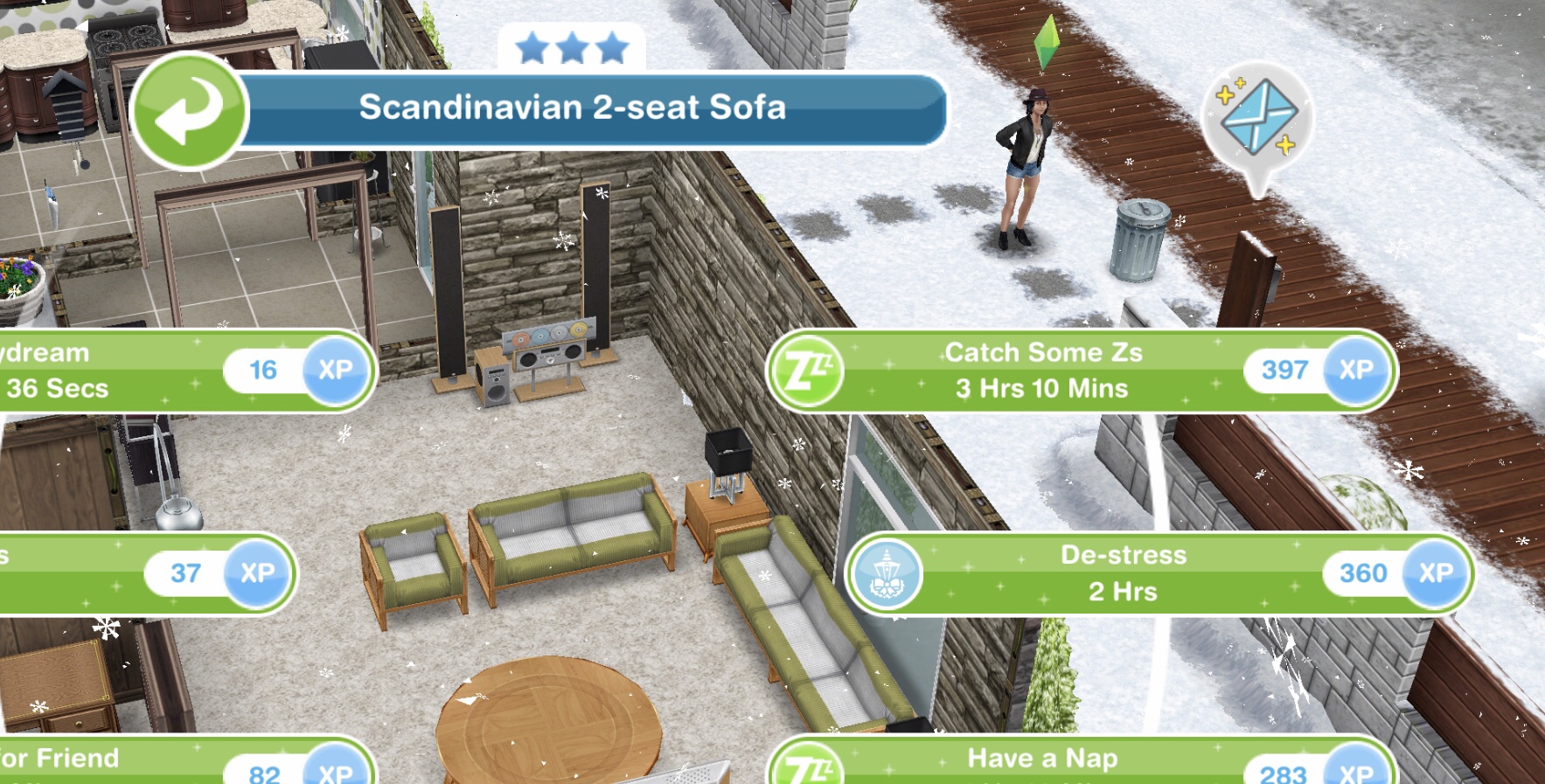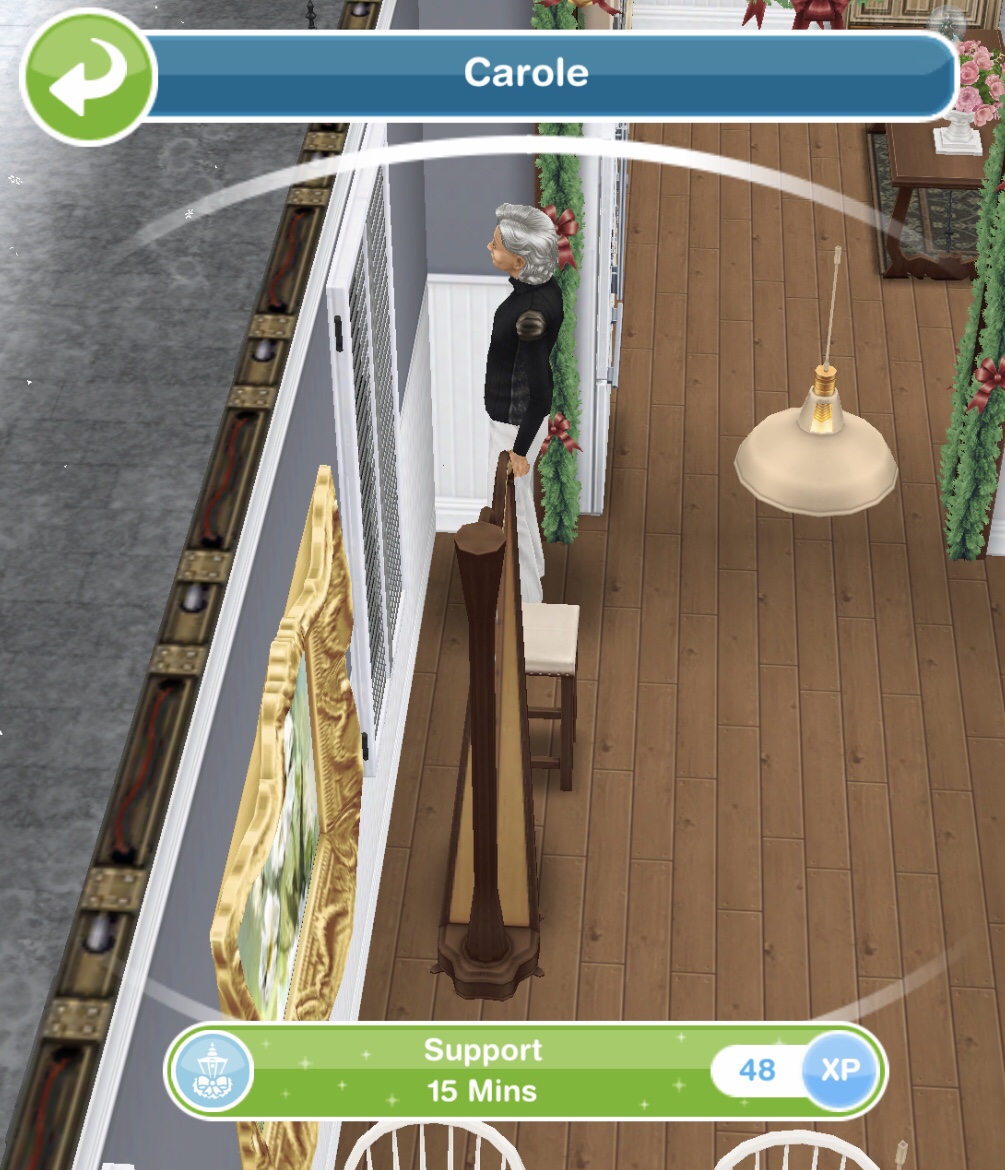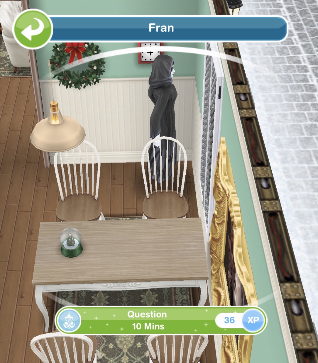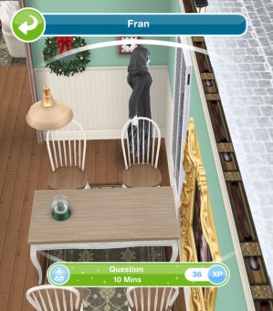 Write 28 Christmas letters- 4 hours 30 minutes (click on a dining chair at a table)(can skip all for 95LP- need to earn LP quickly?)(way too many sims needed for the final day!)