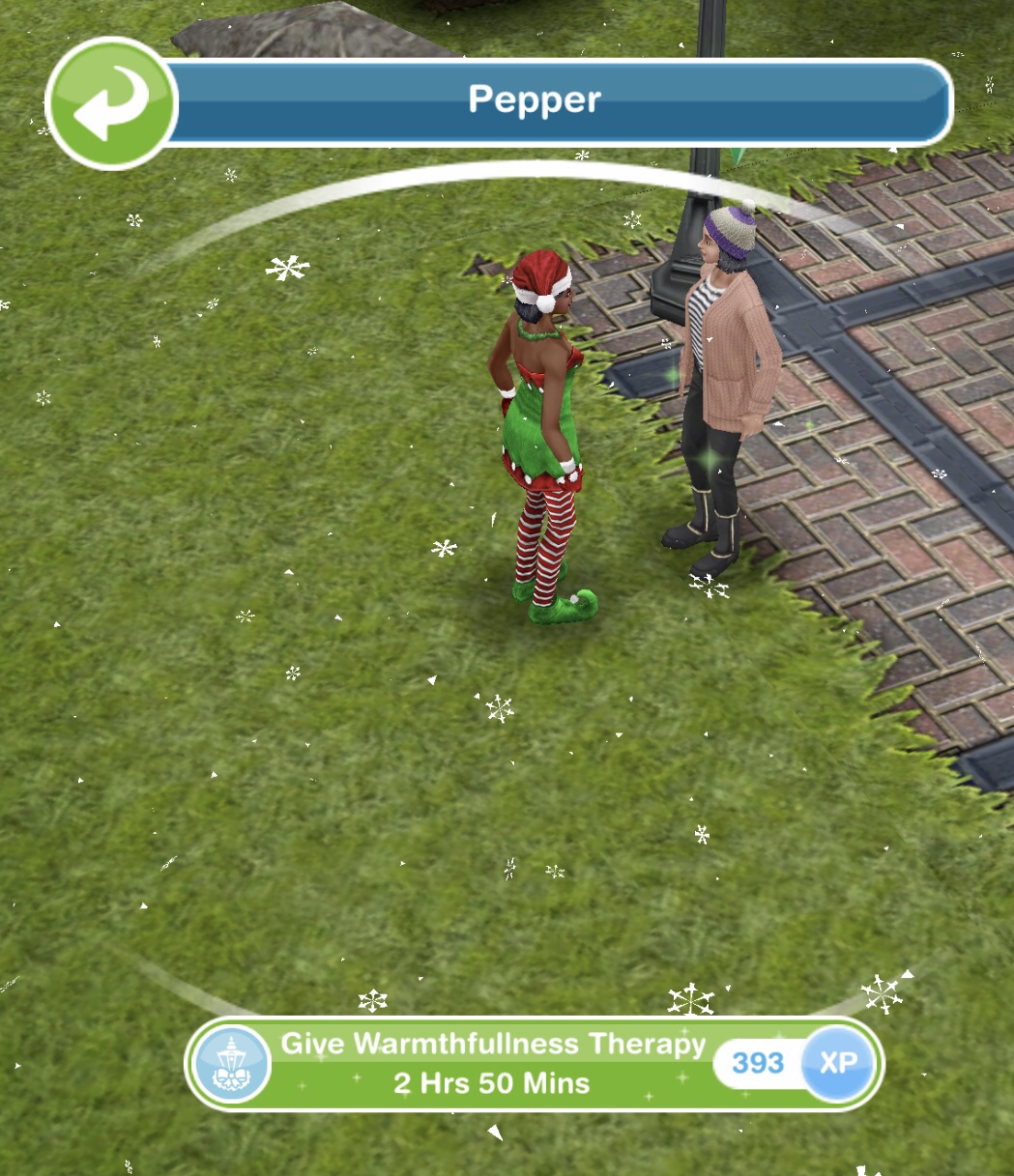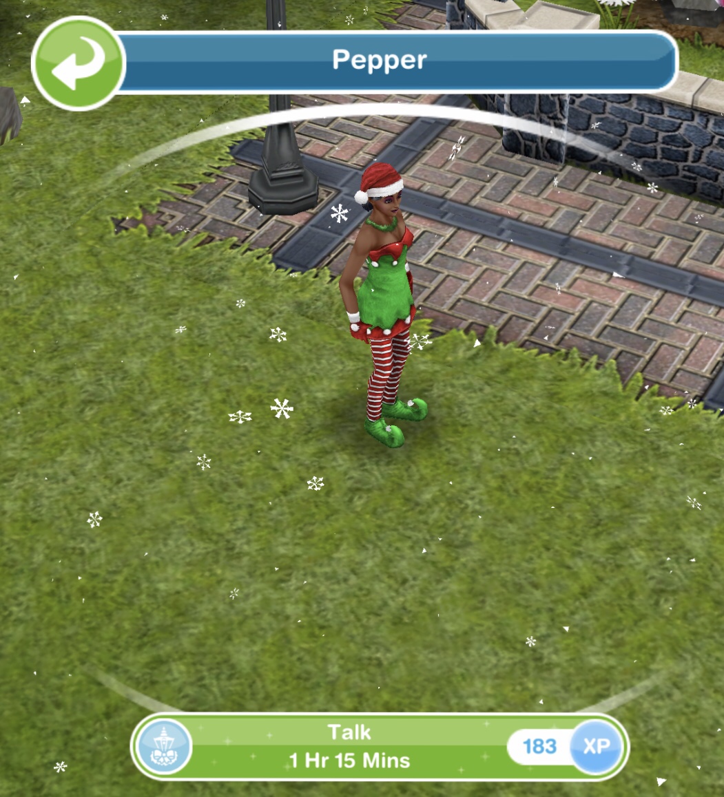 Talk to Pepper in the park- 1 hour 15 minutes Can’t find Pepper? Pepper should appear on the simtracker so you can whistle them to the park