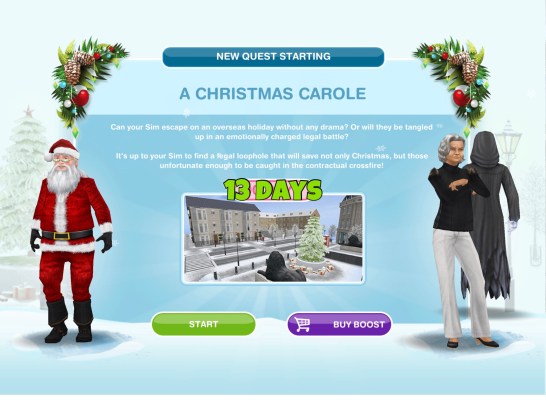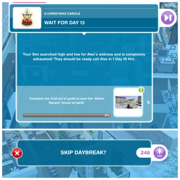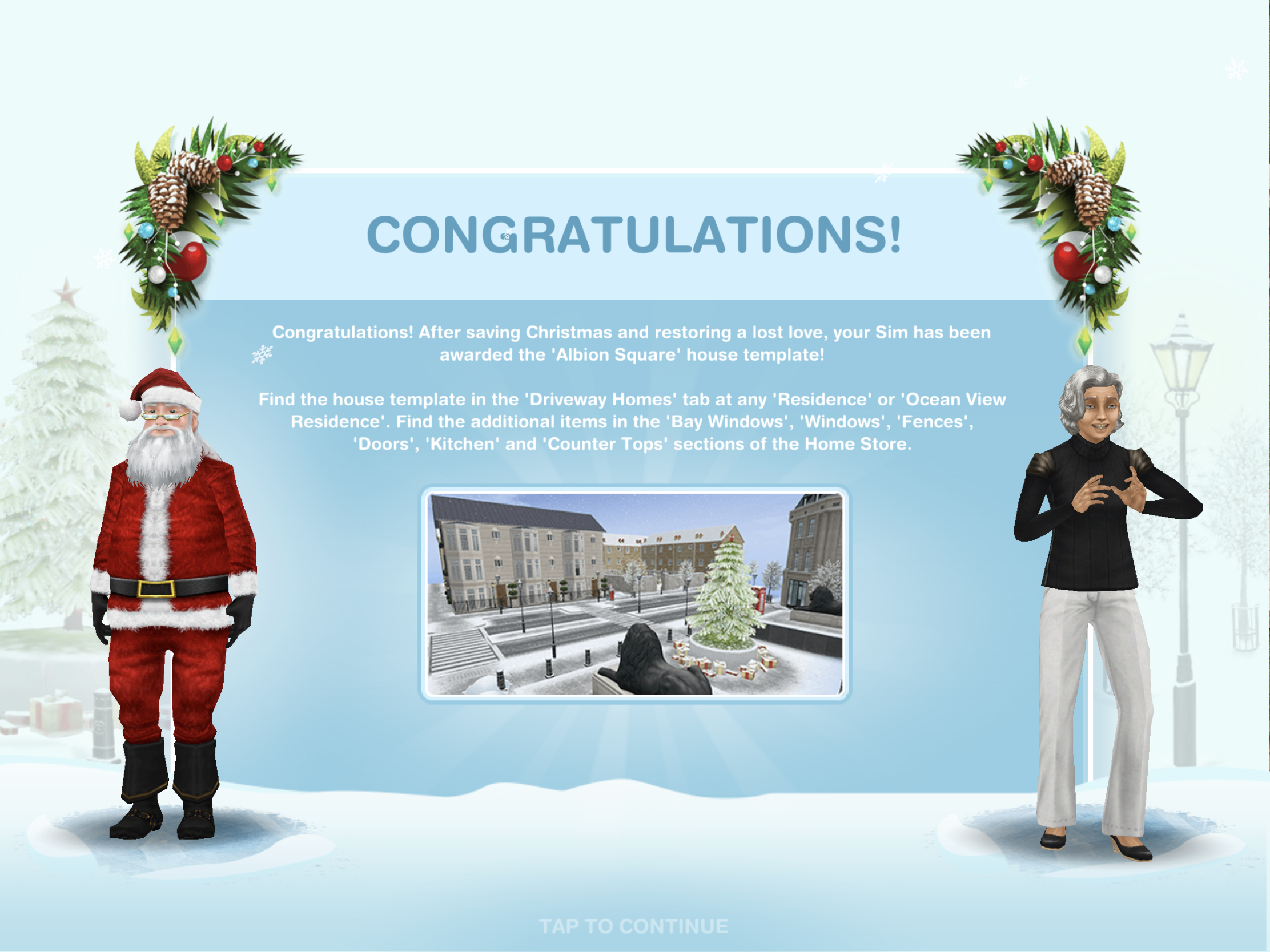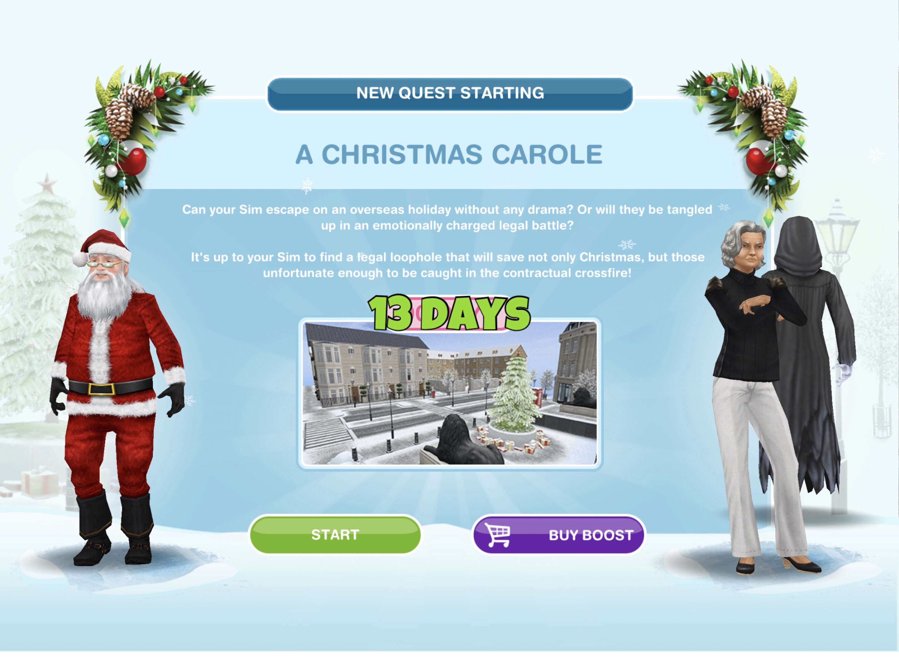 Christmas seems to be on track this year, will your sims get the chance to have a holiday instead? No chance! Join them for this 13 day quest from the 12th December! There are 13 sets of goals to complete in the 13 day time limit so there is a set of goals to complete each day, if you complete the quest in the time limit you win the amazing Albion Square template! Make sure you update your game to the 2020 Christmas update to be able to start this quest