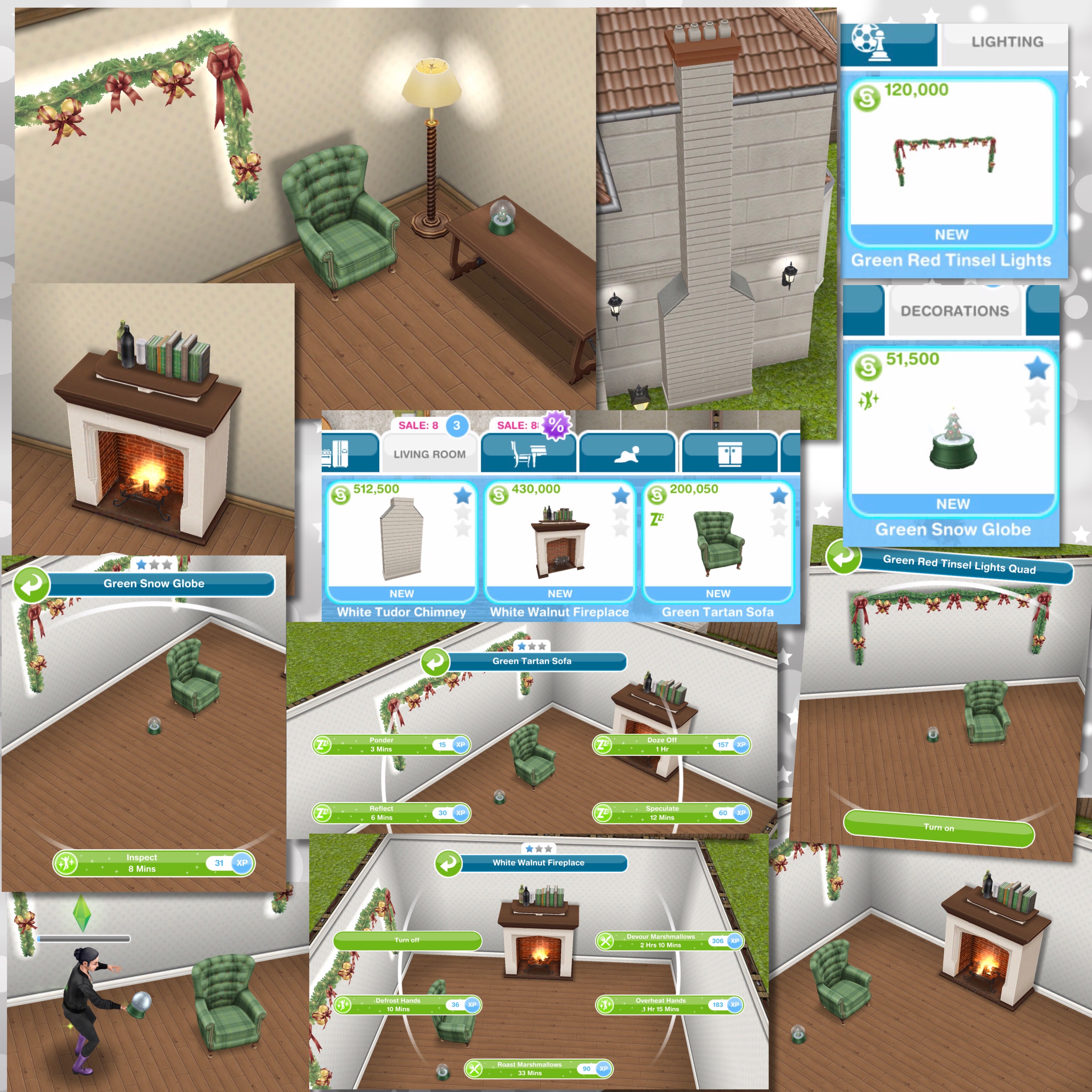 Place 5 Christmas Decorations- you can find these in the featured tab of the home store, the cheapest are the reindeers that cost S500 each but it seems to work if you place stored items from your inventory