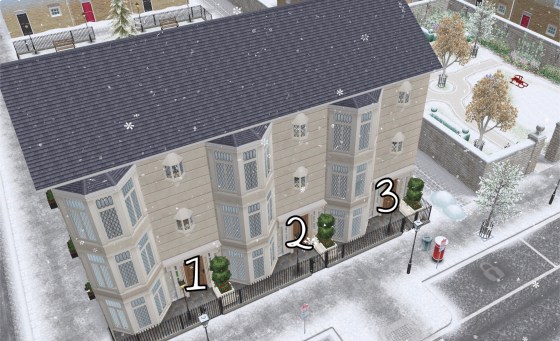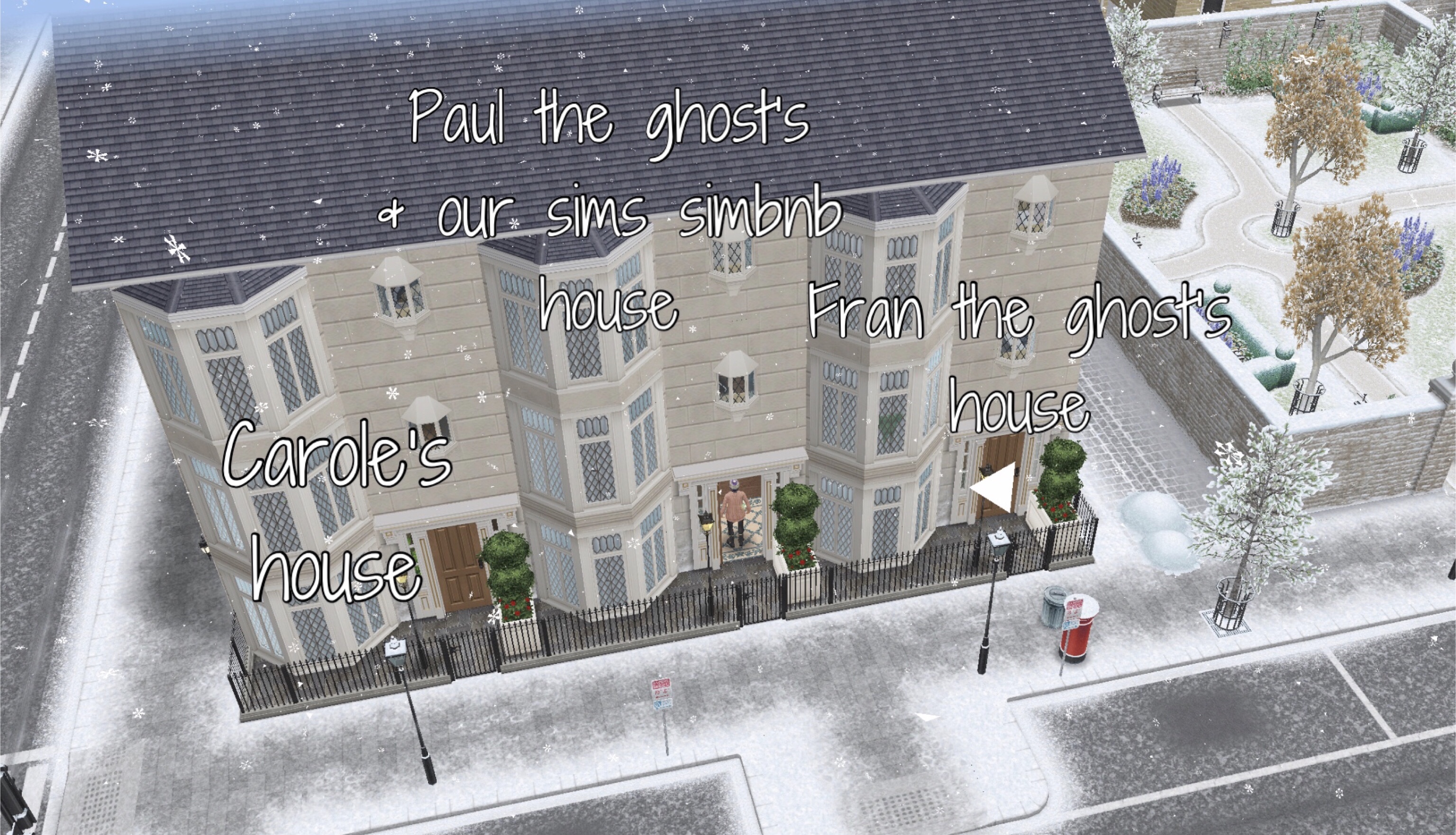 Albion Square is the stunning house template you unlock if you complete this quest in the time limit, it is actually 3 houses in 1. Carole can be found in the house furthest from the park area, Fran the ghost is in the house closest to the park and our sims simbnb is the house in the middle where Paul the ghost can be found: