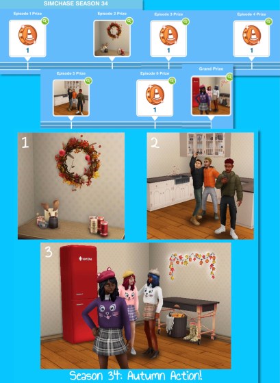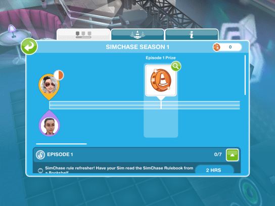 I’m not going to post about the challenges as they may be different for you and they will be different for each season but if you are stuck look for the SimChase symbol on objects around your sims house: