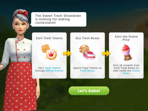 How does it work?The host of the show Patty Cakes will guide your sims through the event which you can start if one is available from the ‘activities’ tab in the event button in the top right of the screen or by clicking on the baking station in Parkside: