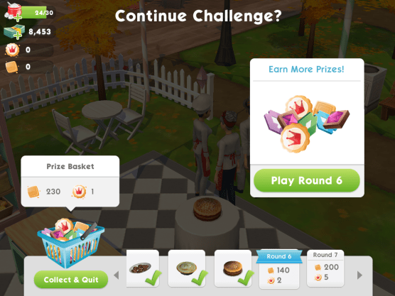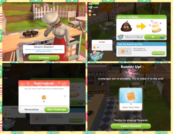 If they fail, they get the option to either take a consolation prize or ask for Patty’s help to fix their dessert (which costs simcash, the amount varies depending on which round you fail on) If Patty fixes the dessert your sim can continue the challenge.