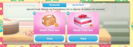 How do I open the prize boxes in the Sweet Treat Showdown?There are two prize boxes the Sweet Treat Box which can be opened with Sweet Treat Tokens and there are a certain amount of prizes to collect and the Royal Treat Box which can be opened with Royal Treat Tokens, there are a certain amount prizes to collect from that box (the amount of tokens needed to open the boxes and amount of prizes available varies depending on each event):