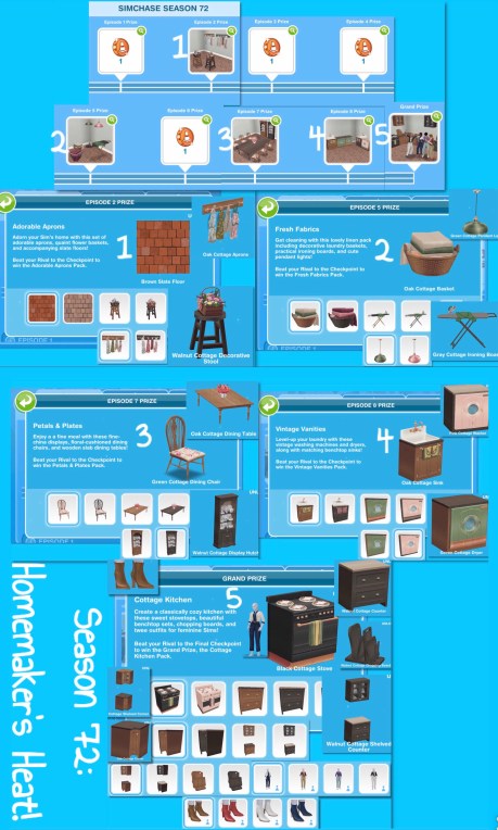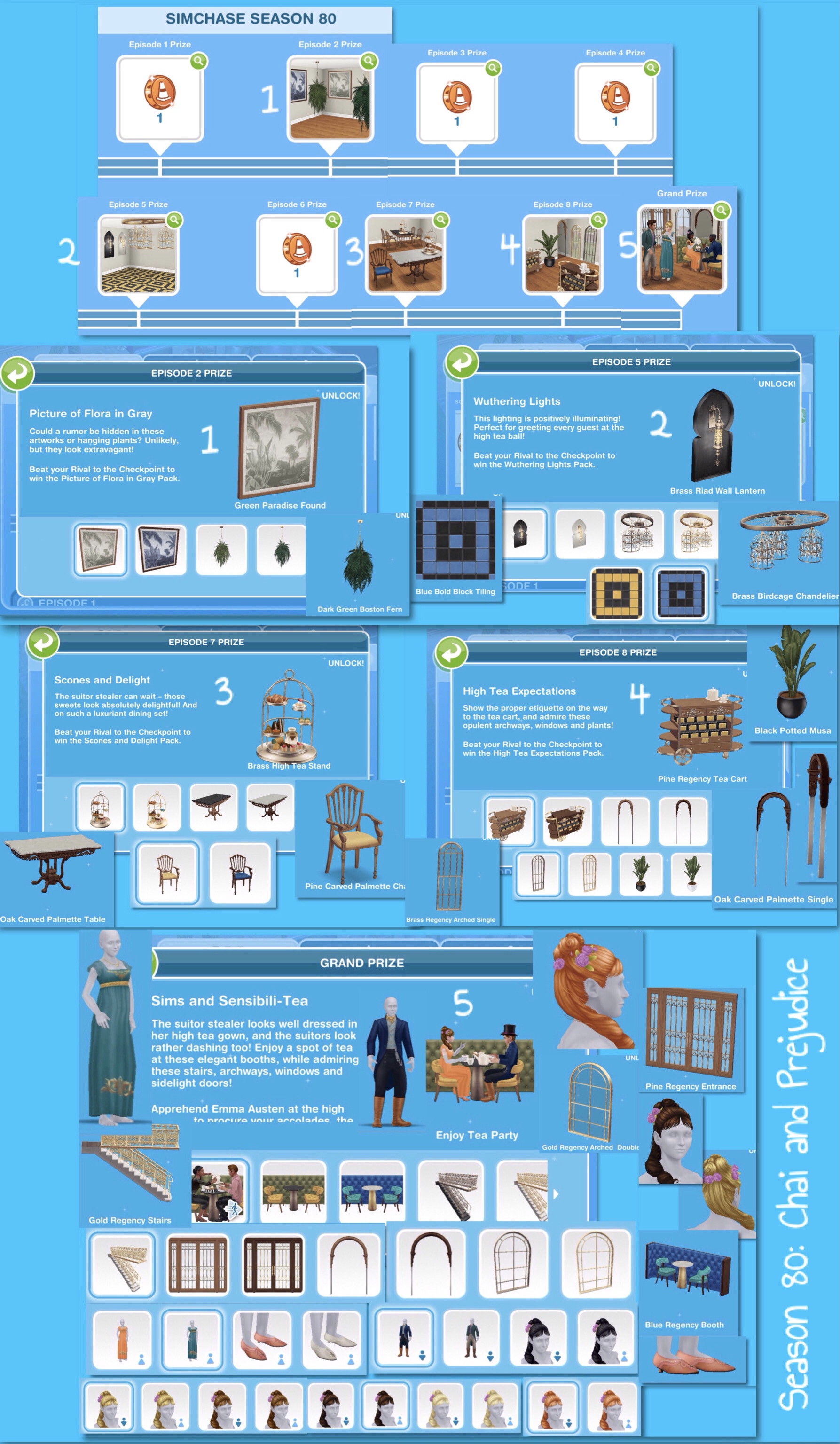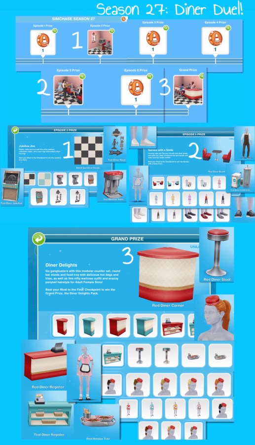 What happens when a simchase event returns, do I have to start again? If you started it before and finished it you won’t get it again but if you didn’t finish it you will start from the beginning, if you unlocked any of the prizes before you will earn a free one of each in buy mode or if it is a create a sim item you will earn a social point replacement (as they are already free)