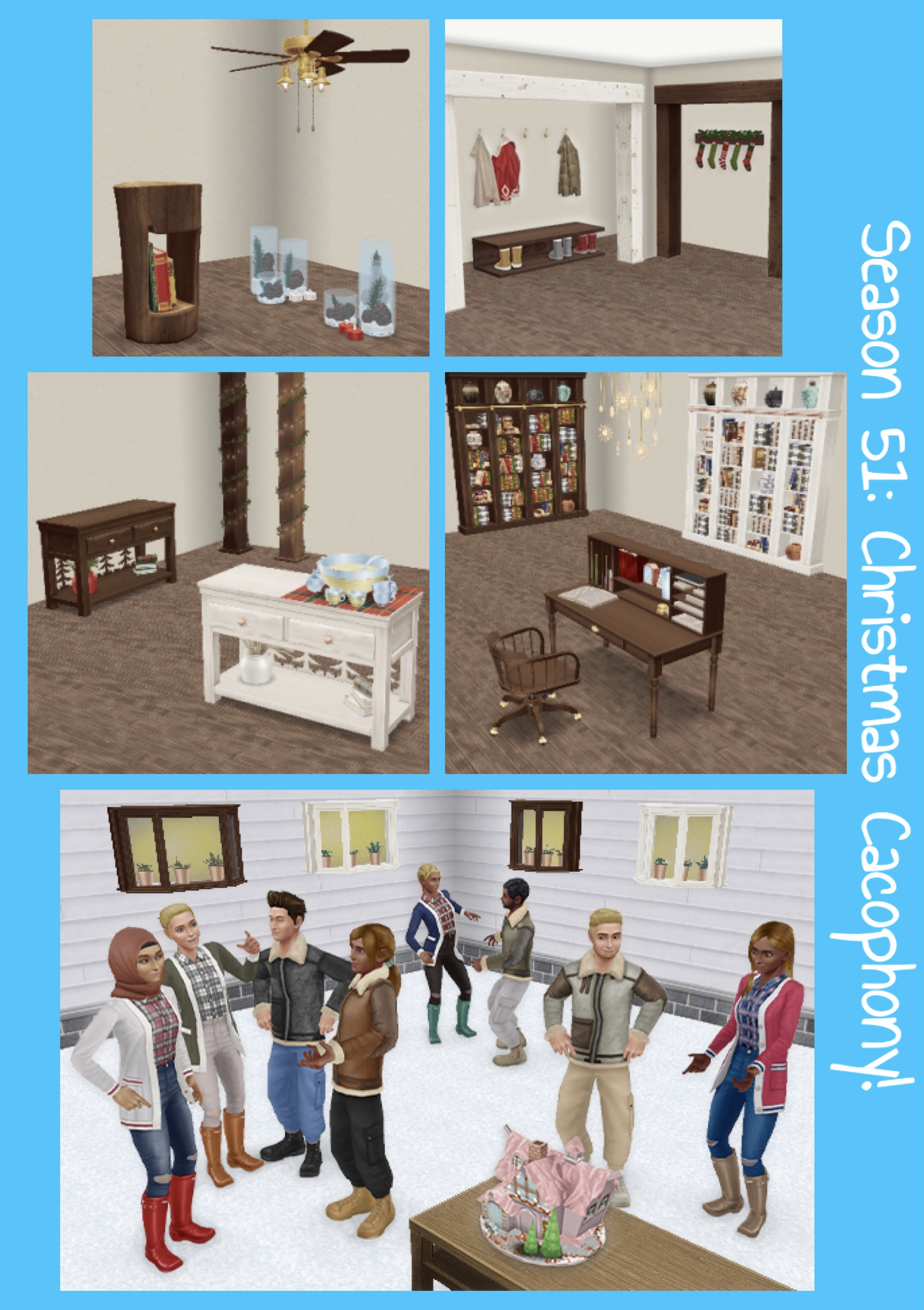 3 Star Rating: Blue Plaid Eggnog Bowl (7SP) Ash Festive Stockings (3SP) Ash Cabin Entryway Unit (12LP) Ash Cabin Bookshelf (10SP) Walnut Cabin Desk (21SP) Purple Gingerbread House (8SP)