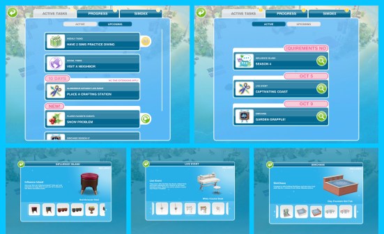 - NEW Active Tasks Menu- active task has now been split into two, active and upcoming so you can see what events and quests are coming soon.