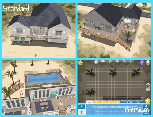 The house is the same on both the standard and premium residences but the premium has a large garden with a swimming pool:
