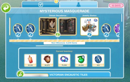 Laura Craft? You may have noticed at the front of one of your houses there is a board with a bubble of a person holding arts and crafts items above it, this is Laura Craft, you can buy her for real money to help you complete the event. When you buy her, you select the item you want her to make from the options: 200 candles, 300 pottery, 450 jewelry or 500 glassware (the amounts seem to differ for most of you and I have no idea why that is!) (you will unlock all the options once you have unlocked all the stations) and you will be able to collect them after 2 hours.