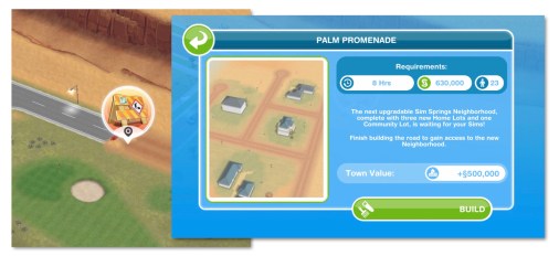 - You will see the roadblock sign, click this to get the option to build Palm Promenade: