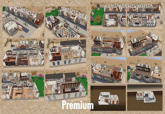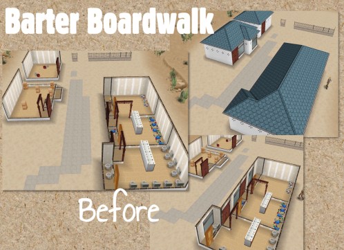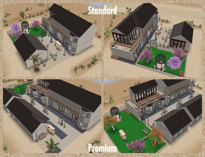 Barter Boardwalk is a row of shops and at the end there is a park, on the premium residence there are more shops and a bigger park. Again I really like this template, between the shops on each side you have the lampposts and clocks and tables outside the cafe to create a realistic looking path.